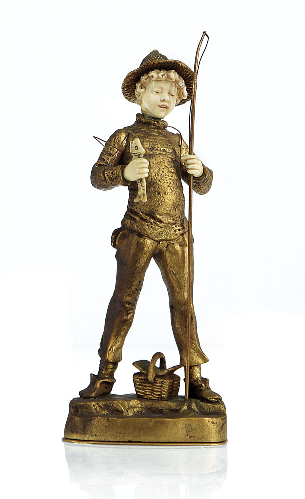 SCULTORE DEL XIX SECOLO Giovane pescatoreBronzo dorato e avorio, alt. cm 20...