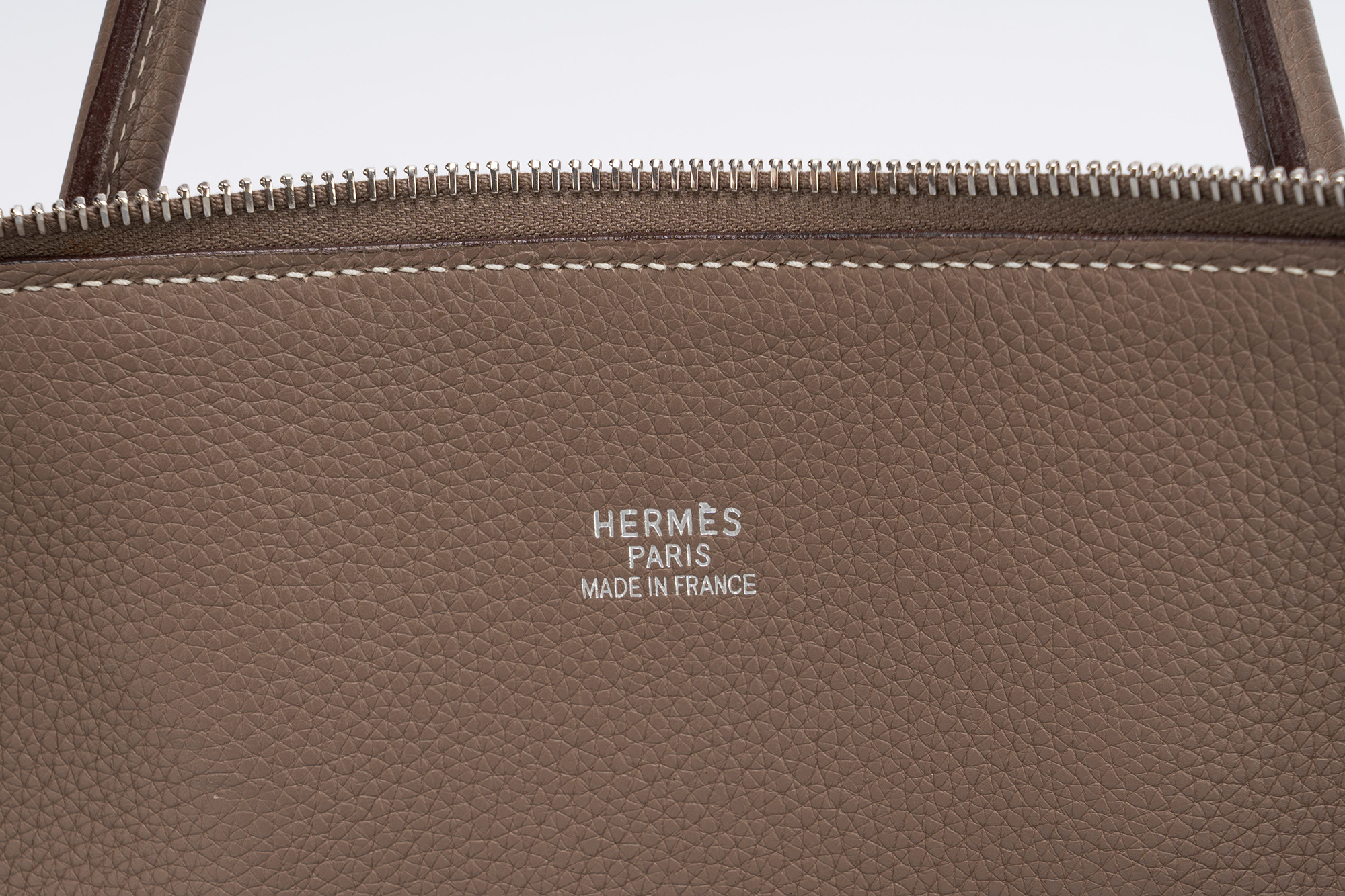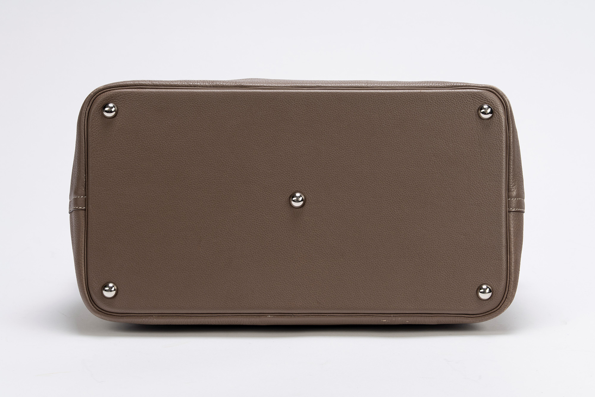 in pelle Togo color Etoupe, doppi manici, dettagli in palladio, cm 45, con sacchetto (lievi segni d'uso)in pelle Togo color Etoupe, doppi manici, dettagli in palladio, cm 45, con sacchetto (lievi segni d'uso)