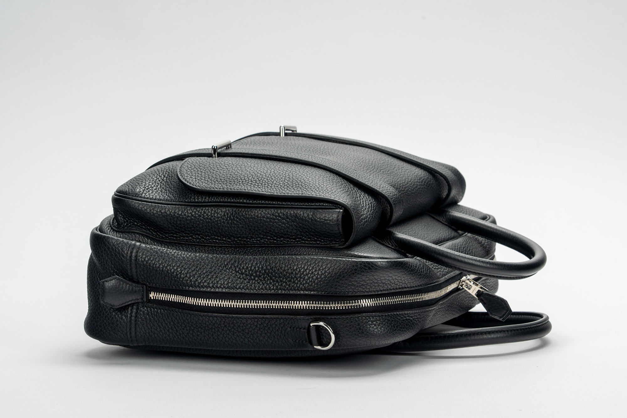 in pelle taurillon clémence color nero, doppi manici, interno in tessuto, dettagli in palladio, con tracolla staccabile, cm 35in pelle taurillon clémence color nero, doppi manici, interno in tessuto, dettagli in palladio, con tracolla staccabile, cm 35