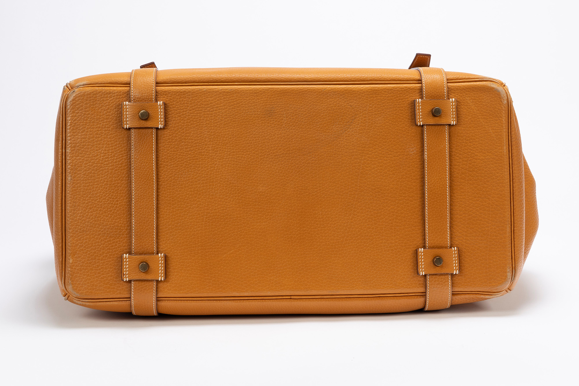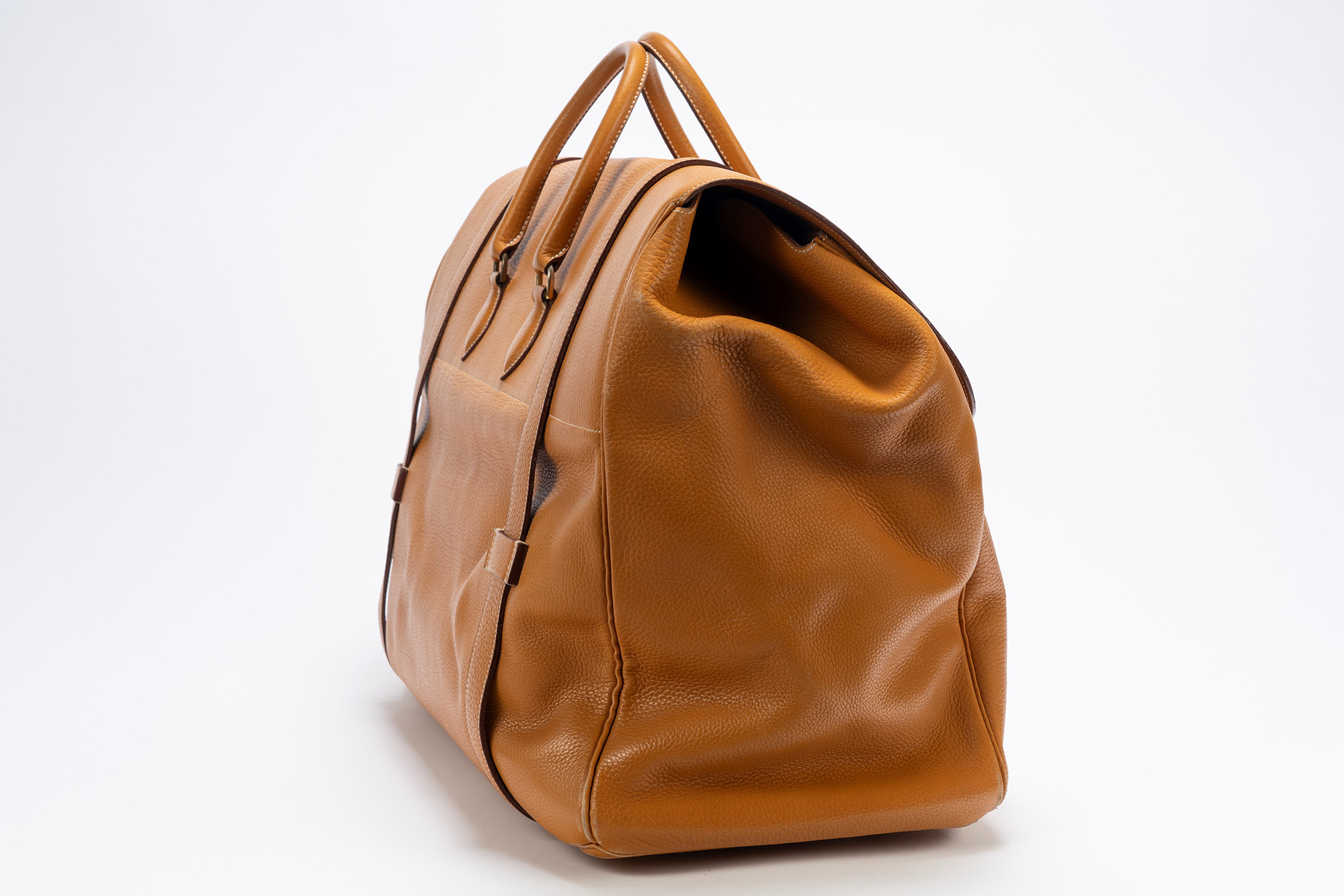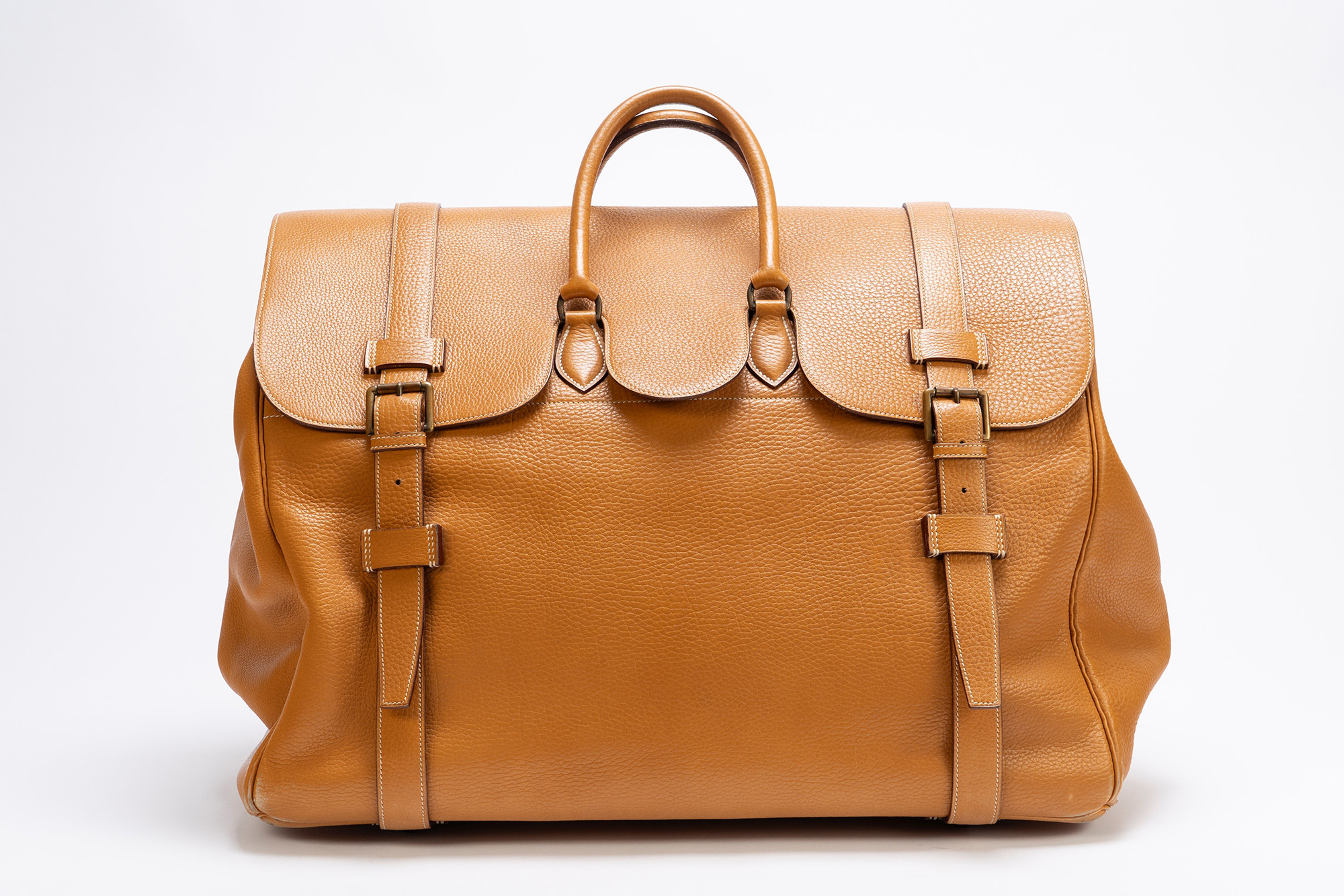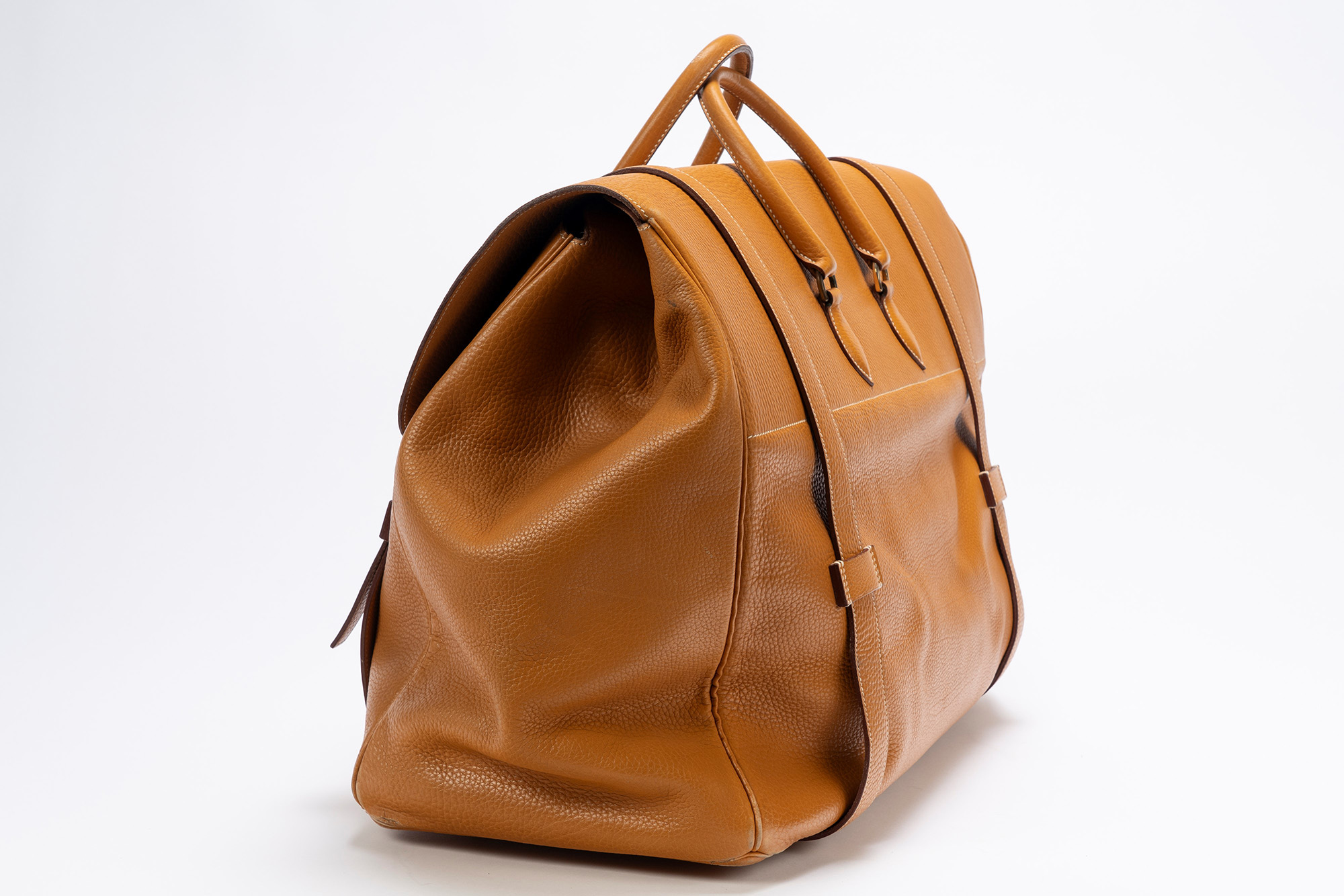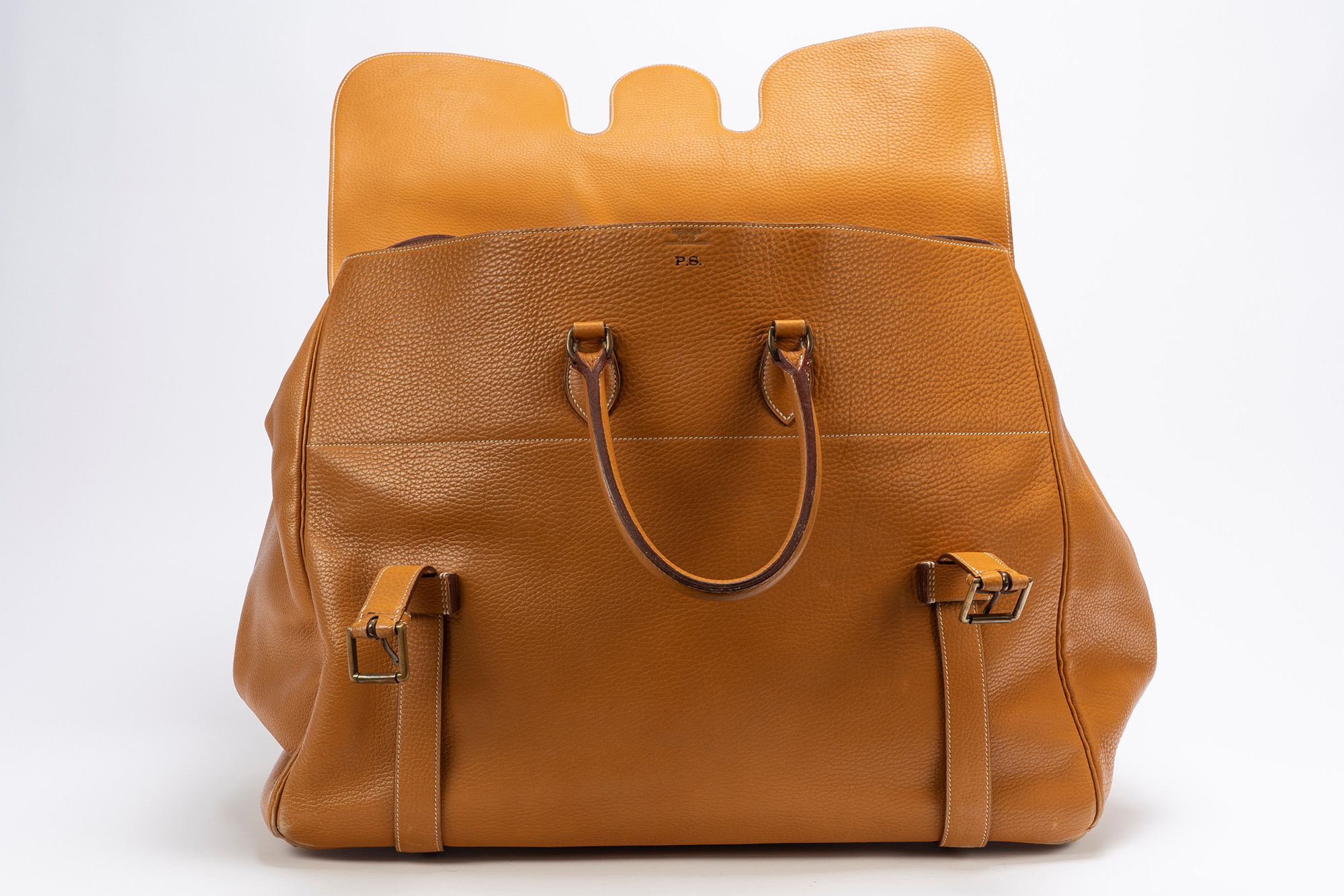 in vache naturelle, doppi manici, dettagli in metallo brunito, cm 55, iniziali P.S., con sacchetto (segni d'uso)in vache naturelle, doppi manici, dettagli in metallo brunito, cm 55, iniziali P.S., con sacchetto (segni d'uso)