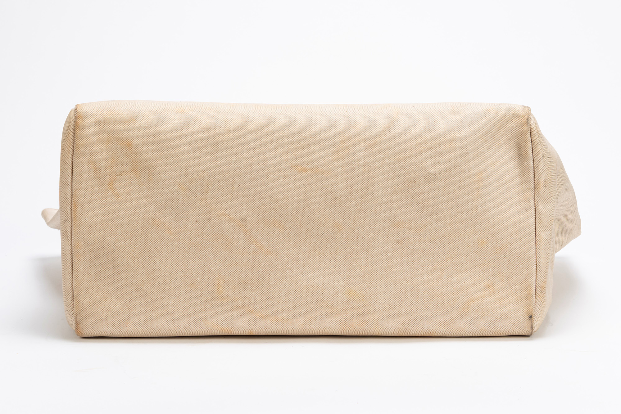 in tela color Ecru e vache naturelle con tracolla, dettagli Clou de selle in palladio, cm 50, con ricambio (importanti segni d'uso)in tela color Ecru e vache naturelle con tracolla, dettagli Clou de selle in palladio, cm 50, con ricambio (importanti segni d'uso)