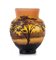VASO IN VETRO DOPPIO, GALLE', 1910 CA., ovoidale, decoro a paesaggio lacustre inciso ad acido nei toni del bruno su fondo sfumato arancio, firma in rilievo a cammeo "Gallé".