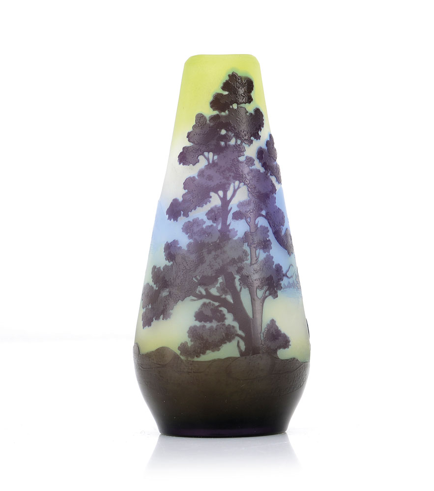 GALLE' VASO IN VETRO TRIPLO, GALLE', 1900 CA., decoro a paesaggio del Vosgi...