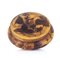 SCATOLA CON COPERCHIO IN VETRO DOPPIO, GALLE', 1900 CA., circolare con decoro a rami con fiori e foglie inciso ad acido nei toni del rosso su fondo miele, firma in rilievo a cammeo "Gallè".