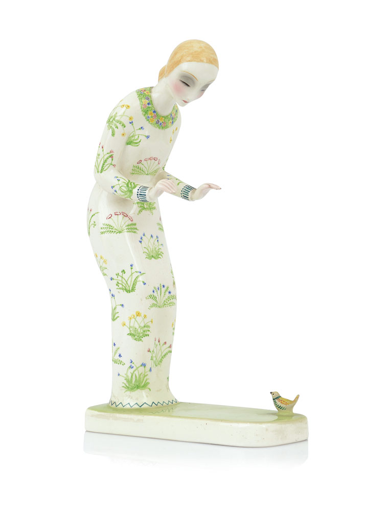 LENCI FIGURA "PROTEZIONE" IN CERAMICA, LENCI, H.K.SCAVINI, 1933, decoro...