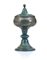 COPPA CON COPERCHIO IN MAIOLICA A LUSTRO, MELANDRI, ANNI '40, decoro a rametti fioriti in oro su fondo turchese.
