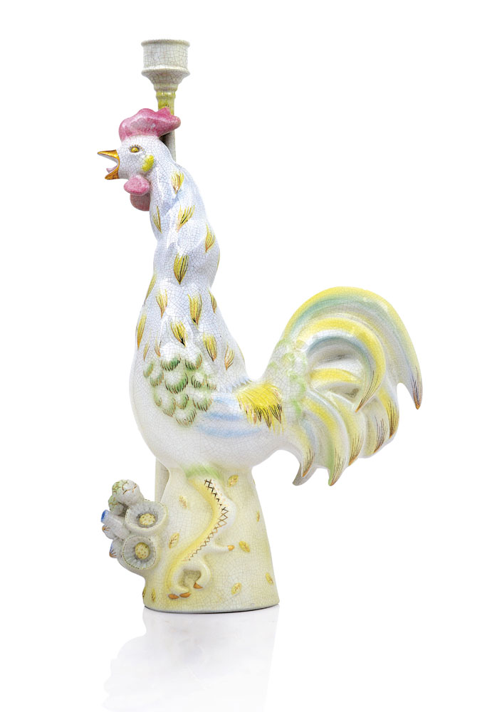 Lotto 473 | LENCI CANDELIERE "GALLUCCIO" IN CERAMICA, LENCI, M.STURANI, 1937 CA, decoro...