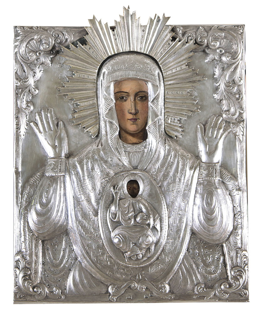 ICONA RUSSA DEL XIX SECOLO Madonna del segnoTempera all'uovo su tavola con...