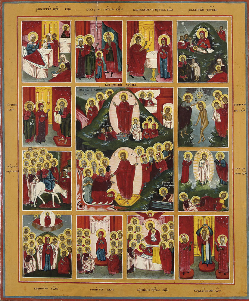 ICONA RUSSA DEL XIX SECOLO Dodici grandi feste Tempera all'uovo su tavola a...