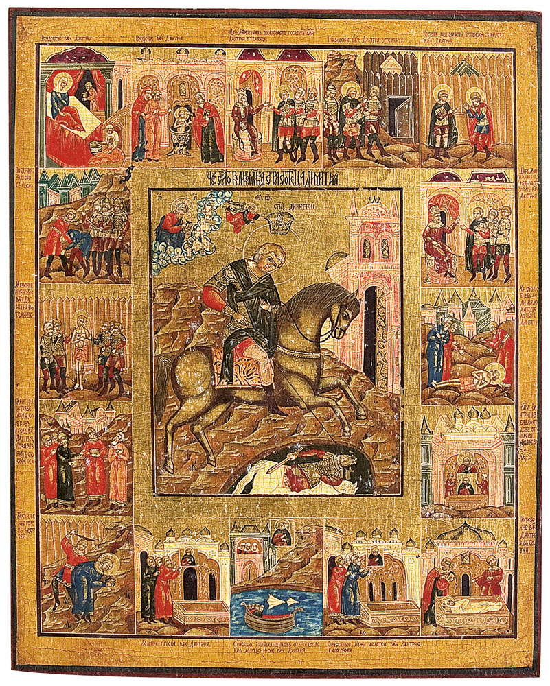 ICONA RUSSA DEL XIX SECOLO San Demetrio di TessalonicoTempera all'uovo su...
