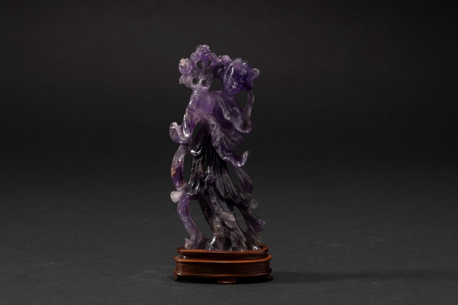 Lotto 18 | Scultura in ametista scolpita raffigurante una Guanyin danzante, Cina, 20th Century