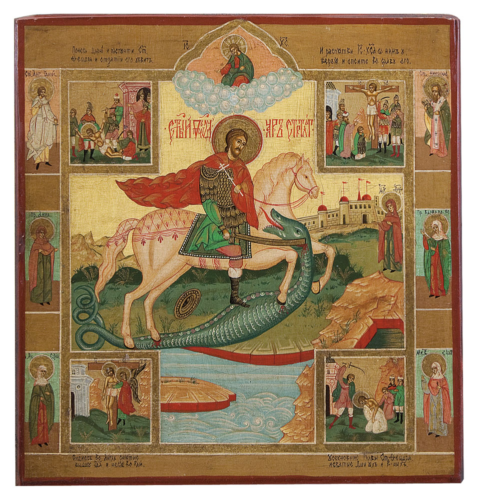 ICONA RUSSA DEL XIX SECOLO San GiorgioTempera all'uovo su tavola, cm 28,2x27.