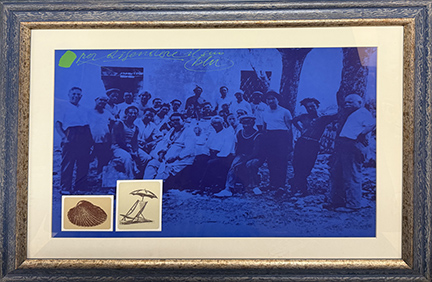 CONCETTO POZZATI, "Per difendere il suo blu", 1977, litografia con intervento grafico, cm 50x70. Al fronte: titolo in alto, firma, tiratura in 100 esemplari in numeri arabi e anno in basso al centro. Opera con cornice in omaggio e accompagnata da certificato di provenienza.