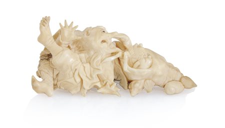 OKIMONO IN AVORIO, GIAPPONE, XIX SECOLO, con gruppo di oni su roccia; lievi scheggiature.