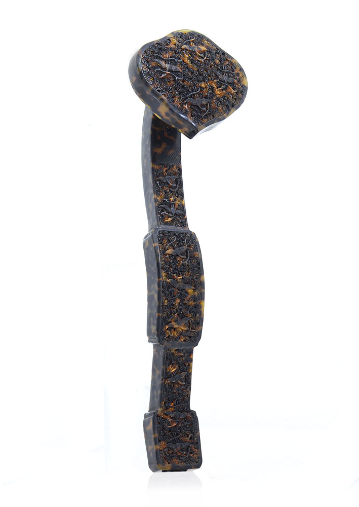 ARTE ORIENTALE SCETTRO "GUY" IN TARTARUGA INTAGLIATO, CINA, XIX SECOLO,...
