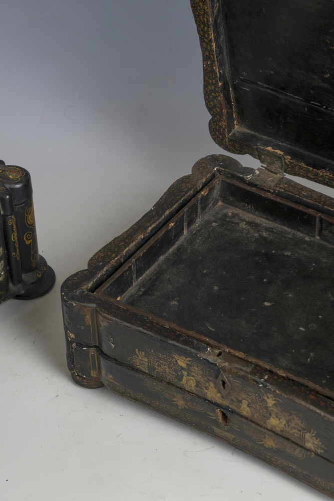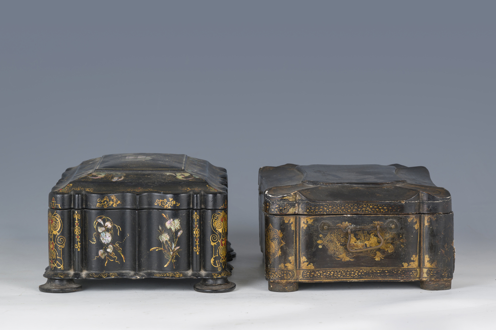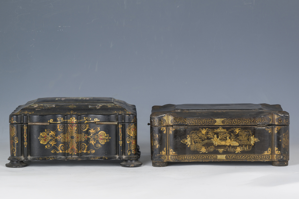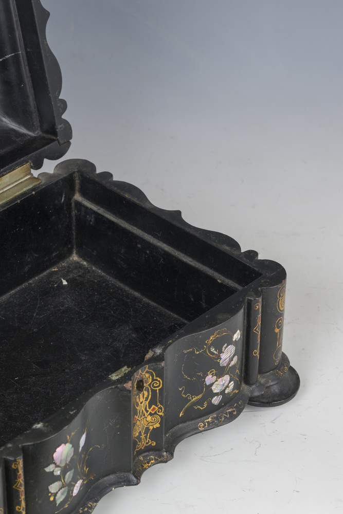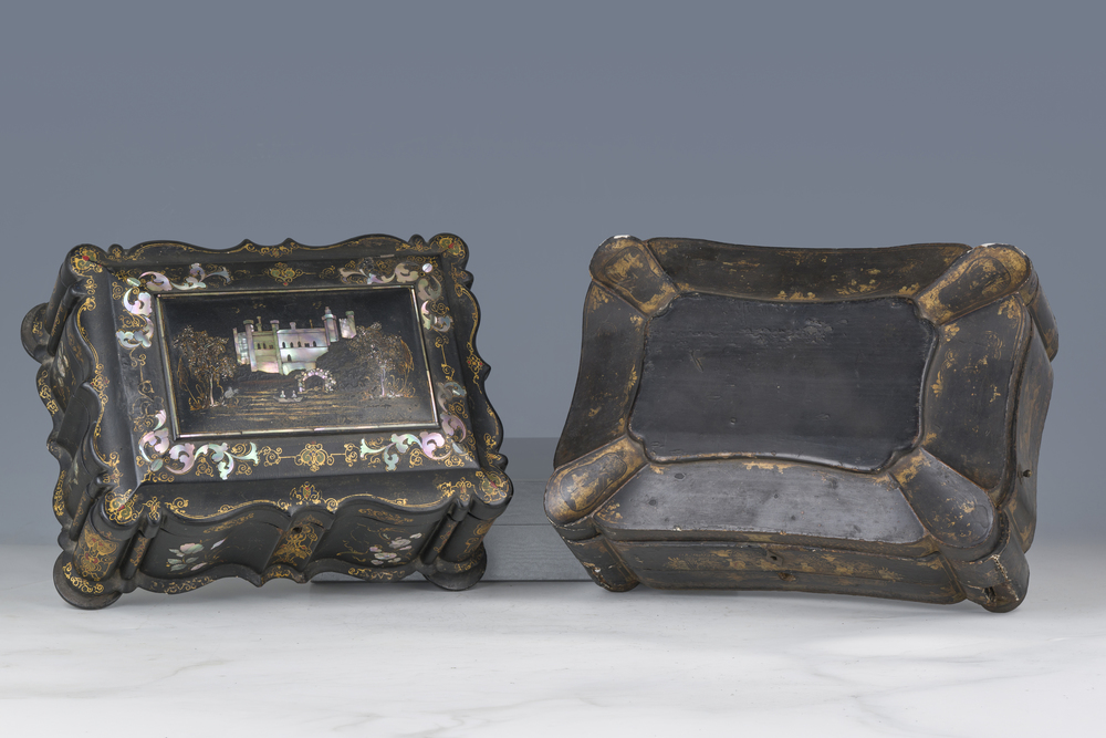 Francia, papier-mâché con decori di madreperla, 15 x 24 x 31 cm