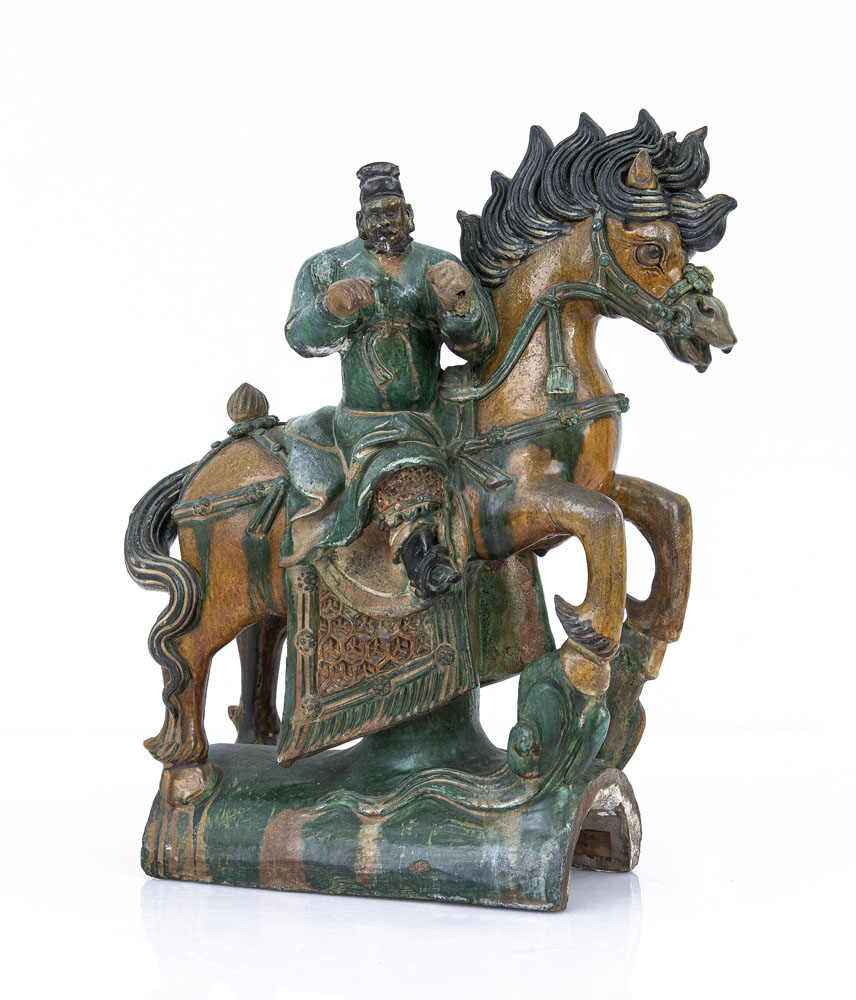 ARTE ORIENTALE TEGOLA IN CERAMICA, CINA, XIX SECOLO, con cavaliere su...