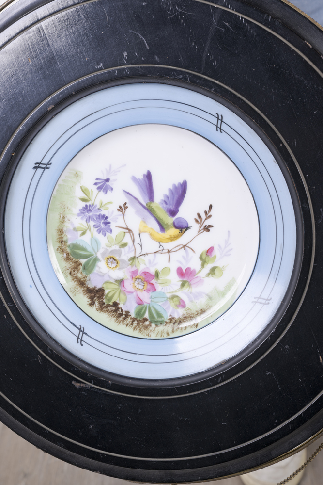 Legno laccato con piatto decorato, h 75 cm, d 42 cm