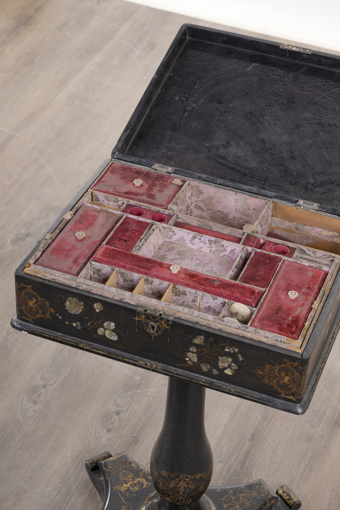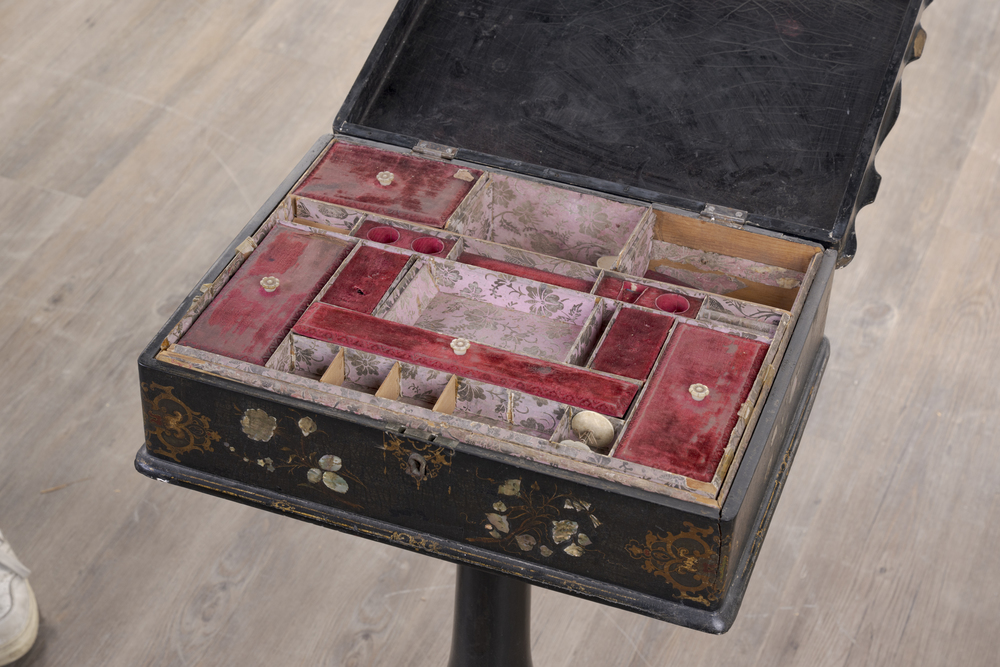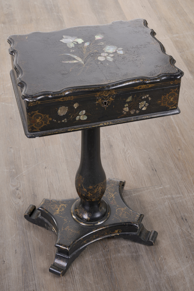A papier-mâché with mother-of-pearl inlays, 73 x 43 x 33 cm