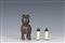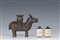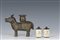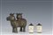 Lotto composto da una figura di tapiro in bronzo e due snuff bottles in osso inciso con fanciulle entro paesaggio, Cina, XIX/XX secolo