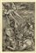 Xilografia. mm 295x200. Bartsch, VII, 33. Hollstein, 125. Con il monogramma dell'artista in basso a sinistra. Buona prova di questo raro intaglio nell'unico stato, impressa su carta vergellata priva di filigrana. Al verso in basso marchio di collezione Dr. Paul Wescher (Hohentwiel, Germania 1896-Pacific Palisades 1974), (Lugt, 5551). (1) Esemplare rifilato alla linea d'inquadramento, quasi interamente visibile, e applicato in alto a vecchio cartoncino rigido. Alcuni strappi riparati al verso, altri di piccola entità ancora aperti alle estremità. Lacuna di carta al lato destro in basso con frammento di pertinenza incollato al supporto. Fratture in alto lungo il margine applicato.