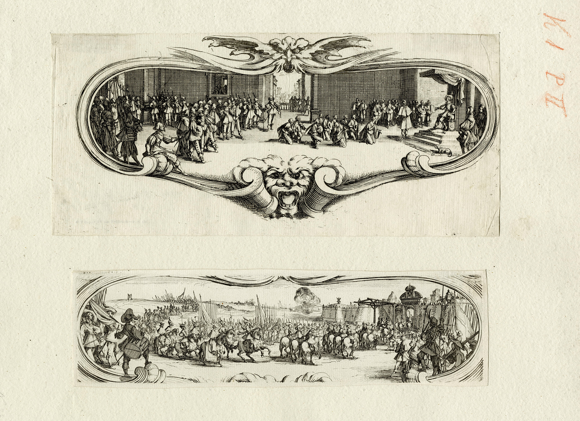 Jacques Callot, Descente de M. De Toyras en Lisle de Ré / Défaite des Anglais / Les Rochelloys demandent pardon au Roy / L'entrée du Roy a La Rochelle. 1631.