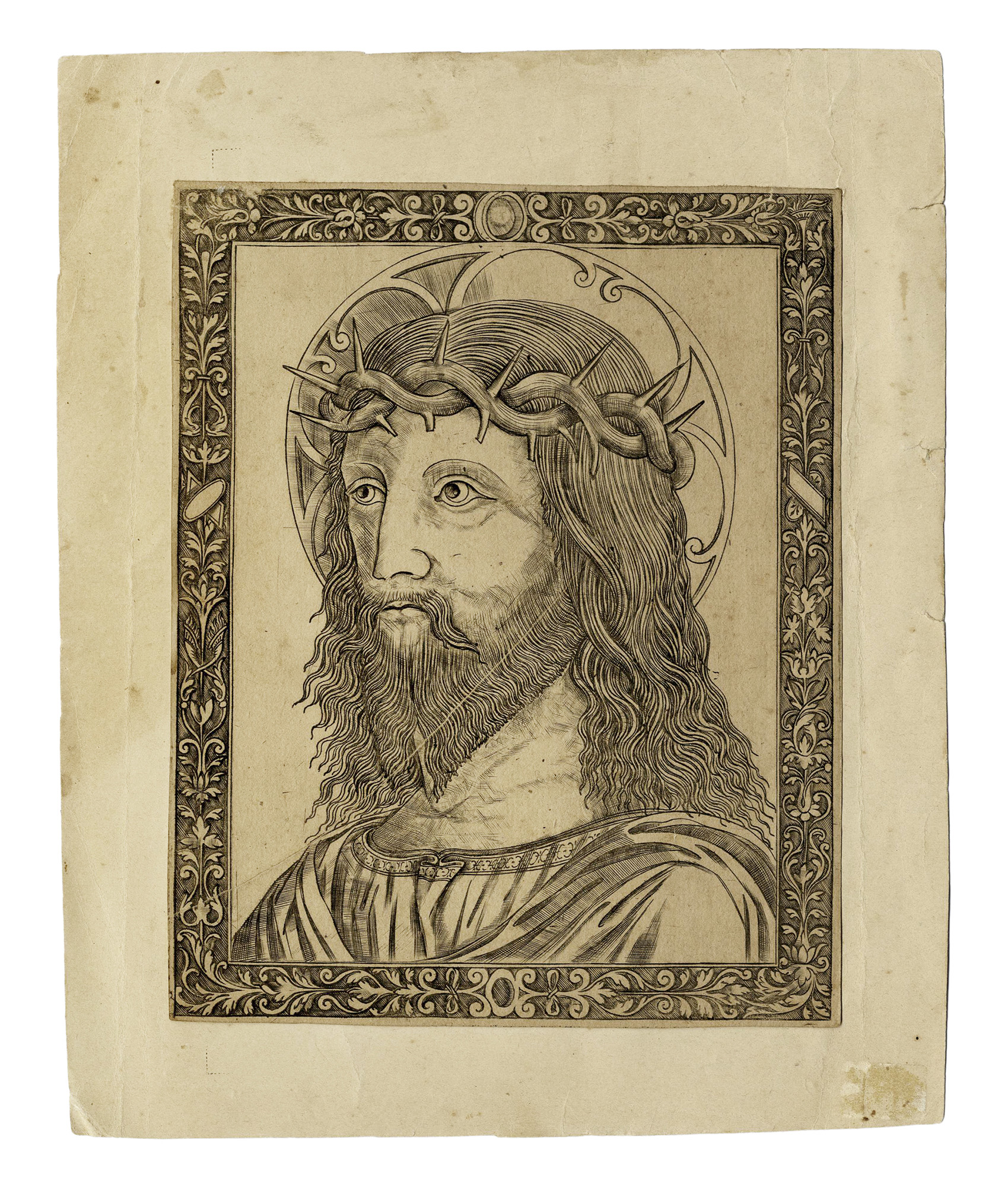 Bulino. mm 181x144. Hind V, 78.6. TIB, Commentary, vol. 24 parte IV, pag. 86. L'attribuzione è stata avanzata con riserva da Hind anche se non con consenso unanime (si veda A. Jay Levenson, Konrad Oberhuber, Jacquelyn L. Sheehan, Early italian engravings, Washington 1973, pag. 273). Attualmente la critica respinge decisamente l'attribuzione a da Birago ritenendo comunque l'incisione di scuola milanese. Al momento non si conoscono esemplari in tiratura coeva, tuttavia la nitidezza delle rare prove postume ha lasciato supporre che l'utilizzo della lastra sia iniziato attorno alla metà del XVII secolo. Buona prova in tiratura tarda su carta vergellata lievemente spessa priva di filigrana. (1) Esemplare incollato al margine superiore a vecchio supporto in cartoncino. Rifilato all'interno dell'impronta del rame con piccoli/sottili margini oltre la linea d'inquadramento. Lieve piega di stampa trasversale.