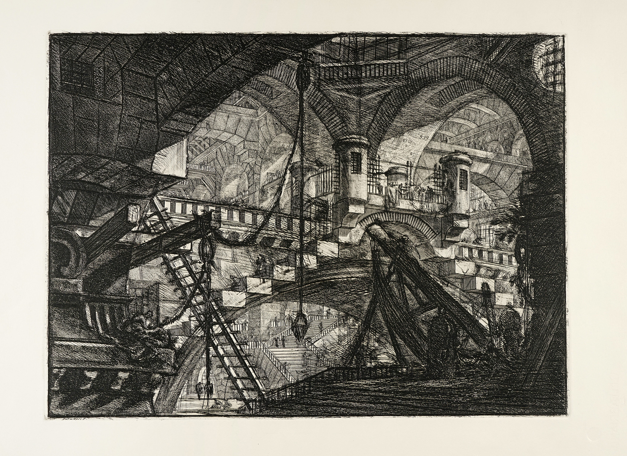 Acquaforte e bulino. mm 407x547. Foglio: mm 500x700. Focillon, 34. Hind, 11. Robison, 37. Undicesima tavola da Carceri d'invenzione dalla II edizione fino alle tarde. Bellissima impressione nel VI stato di 6, con in alto verso destra il numero "XI" e dalla stessa parte più in basso nell'intradosso dell'arco, il numero "359". Carta calcografica pesante "C.M.Fabriano". VI e definitiva edizione stampata dalla Calcografia di Roma sulla metà del XX secolo, con marchio a secco al margine in basso a destra. (1) Foglio integro con margini come in origine. Ottimo stato di conservazione.