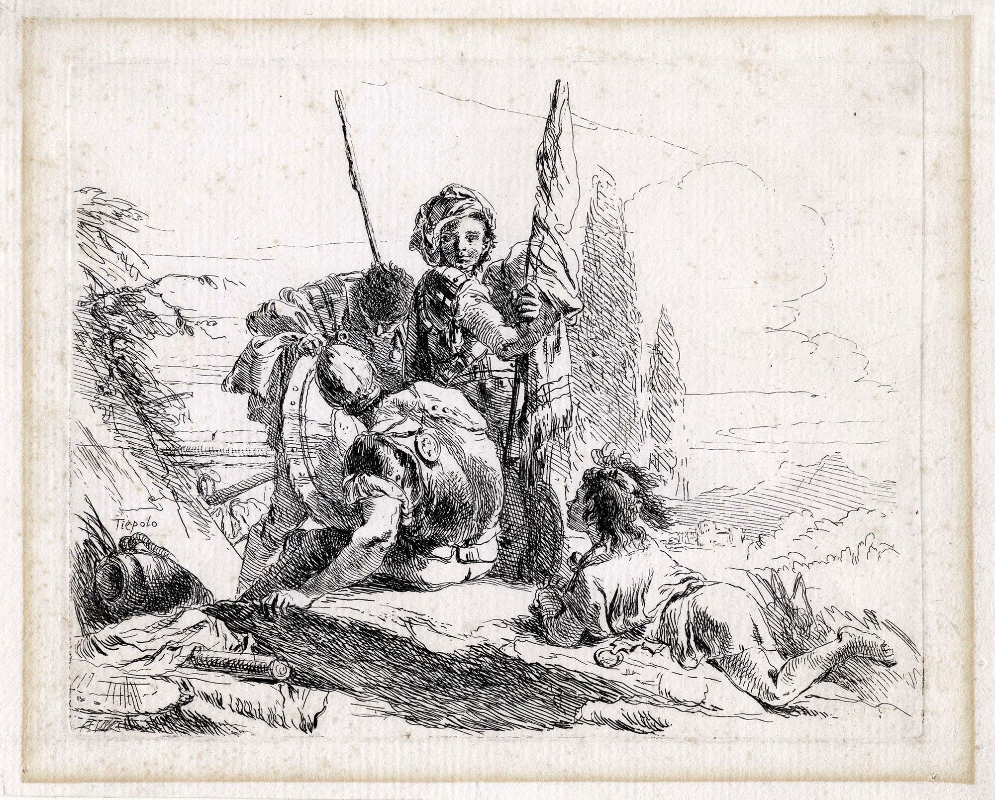 Giovanni Battista Tiepolo, Tre soldati e un ragazzo. 1749. Acquaforte. mm...