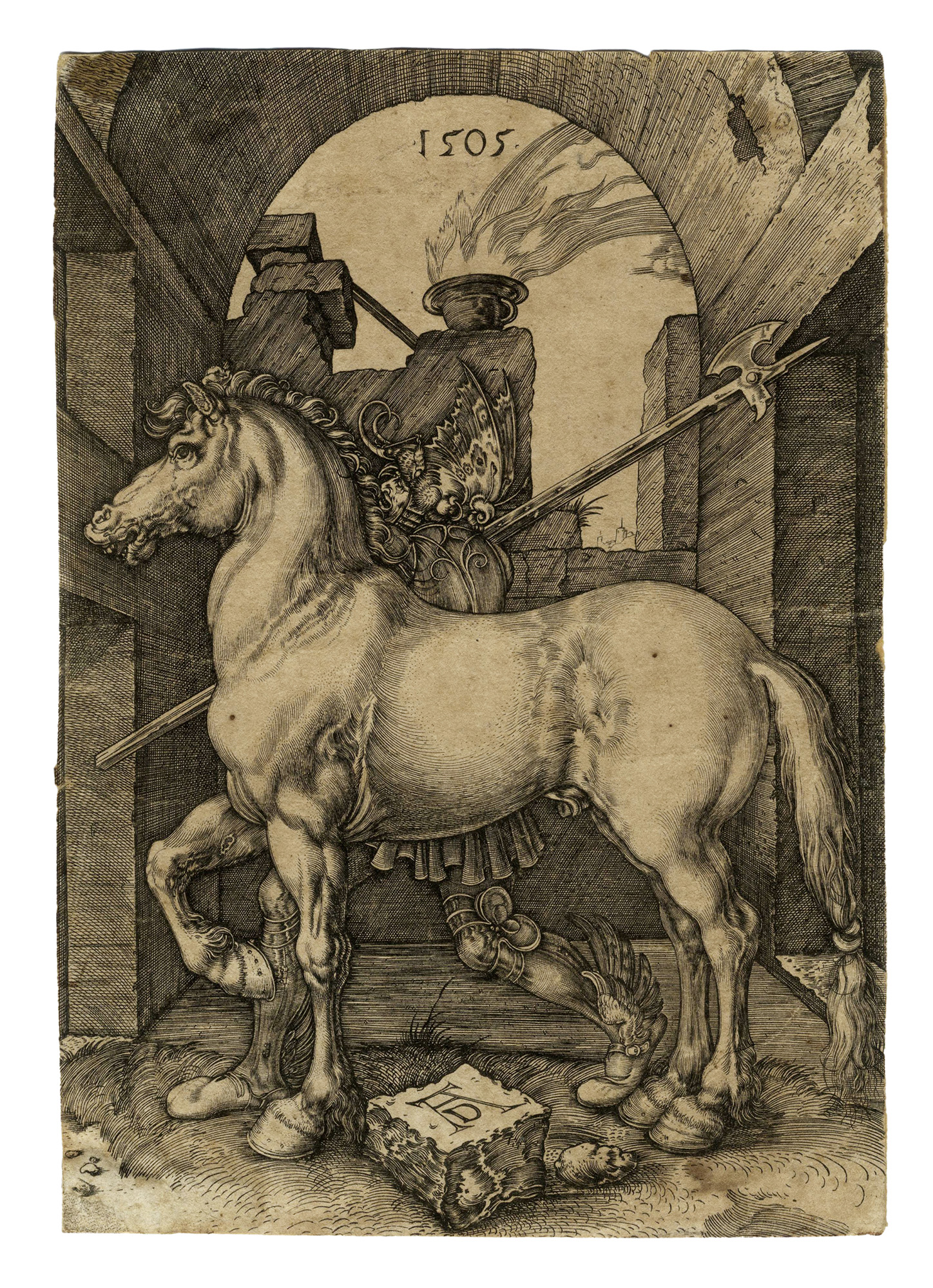 Bulino. mm 148x105. Hollstein, 2211. Mauquoy-Hendrickx, 1739. Da Albrecht Dürer. Con il monogramma di Dürer sulla pietra in basso al centro e la data "1505" in alto, abraso il monogramma "IH.W.AE.17" di Wierix all'angolo inferiore sinistro. Ottima prova su carta vergellata sottile con filigrana "doppia P sormontata da trifoglio e corona". Al verso al centro marchio a penna della collezione Würtemberg (Lugt, 2606). (1) Rifilato all'interno della battuta del rame con mancanza di alcuni mm al margine inferiore. Breve strappo al margine superiore. Minimi residui cartacei al verso. Lievi segni d'uso.