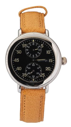 EBERHARD Modello "Criterium regolatore" anni ' 90 Diametro 36 mm Cassa in due parti con carure superiore zigrinata, quadrante con indicazione delle ore in contatore dedicato ad ore 12, contatore minuti ad ore 6 e secondi continui al centro. Movimento a carica manuale calibro 2901-1 "Criterium regolatore" model 90's