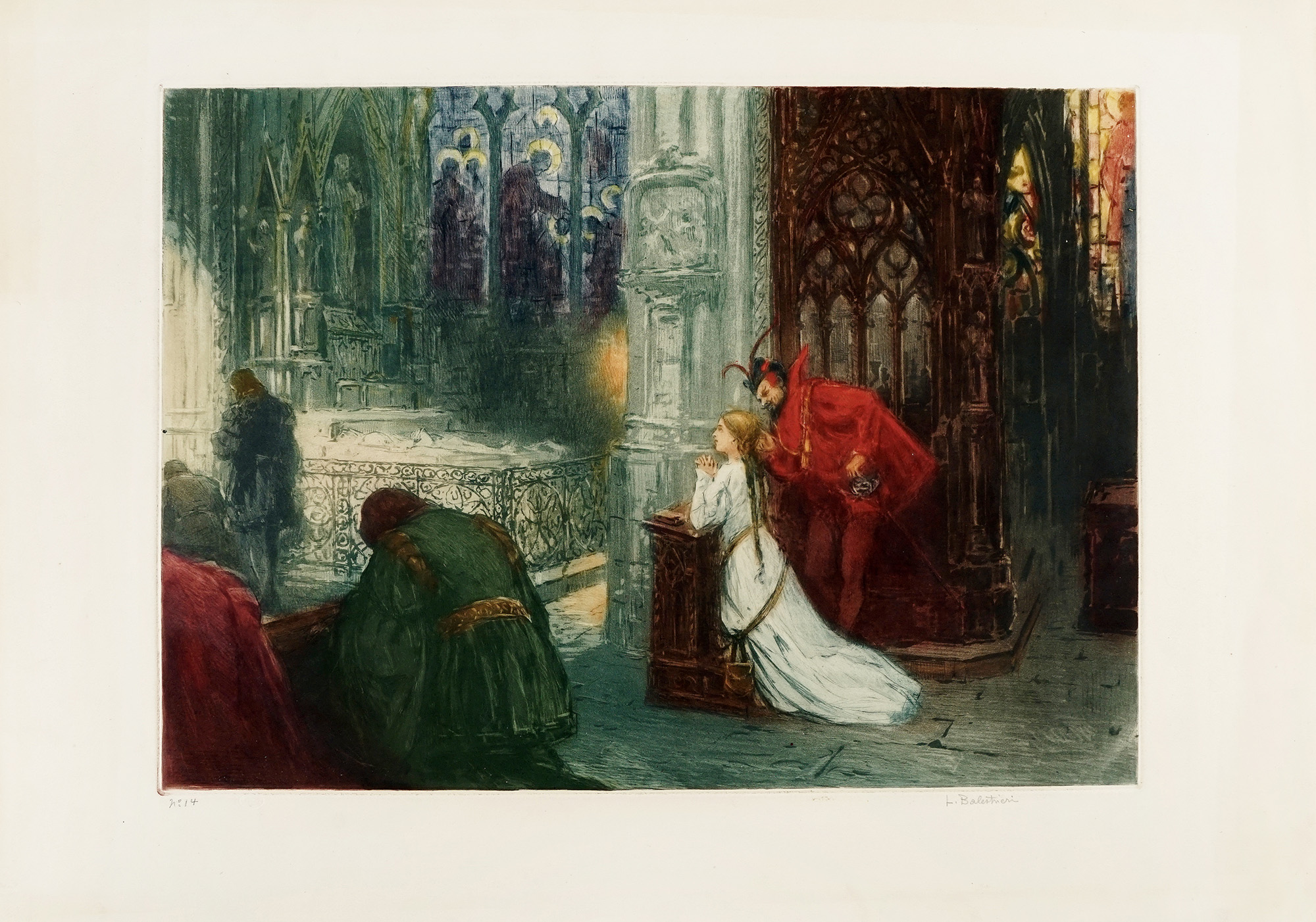 Lionello Balestrieri, Lotto composto di 2 incisioni. 1908. 1) Mefistofele e...