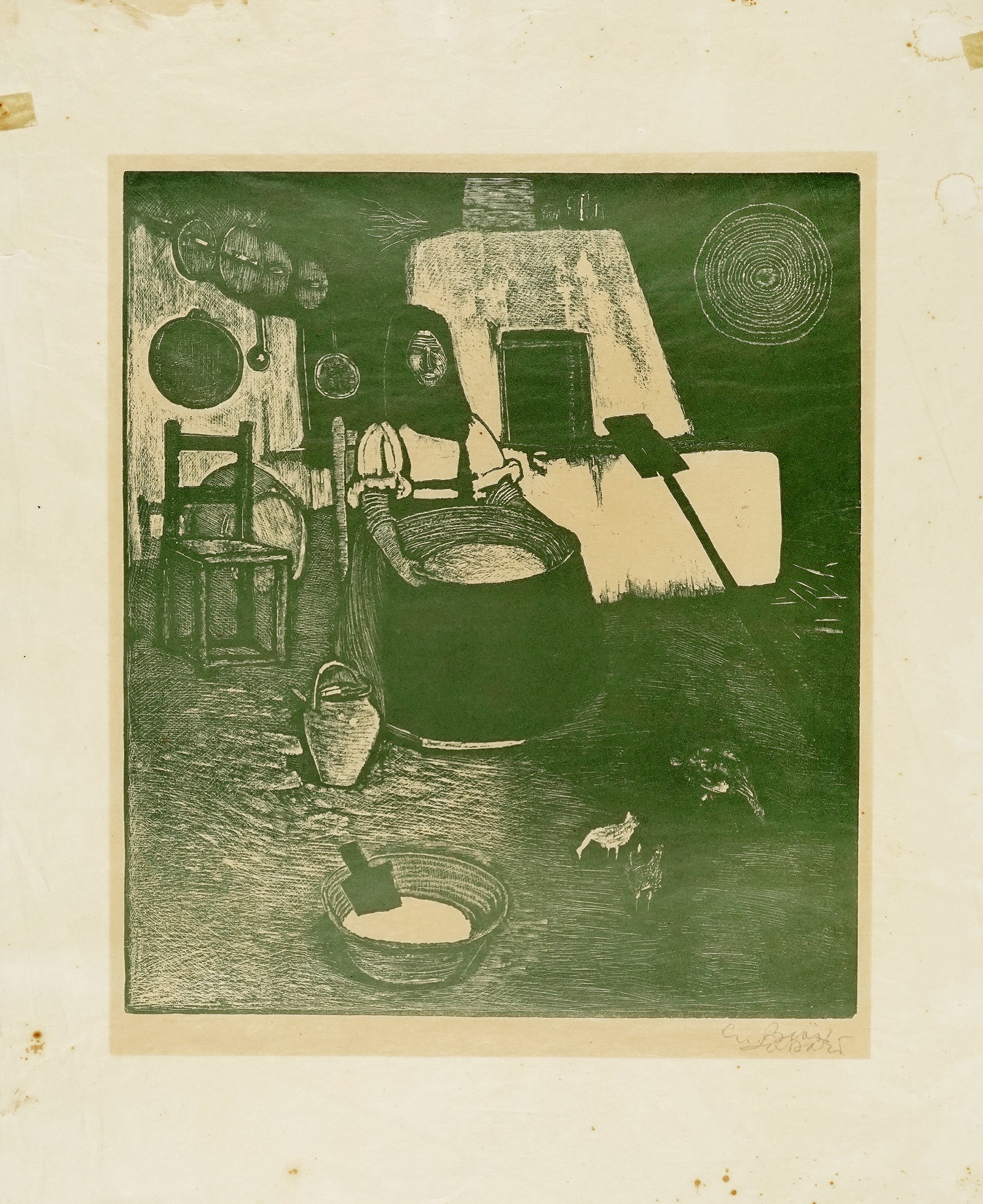 Giuseppe Biasi, In cucina. 1936. Linoleografia su velina. mm 340x320. Foglio:...