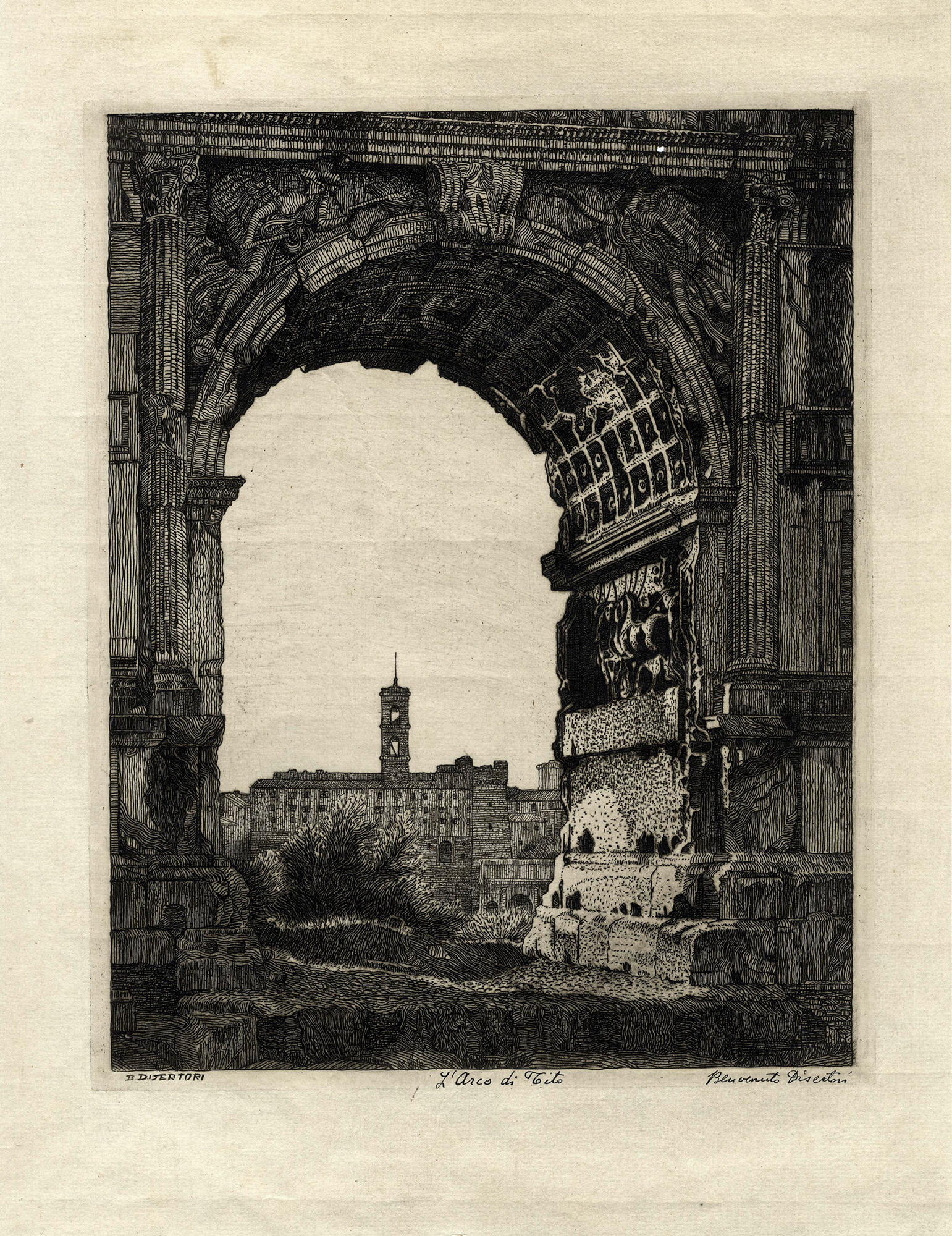 Benvenuto Disertori, Lotto composto di 2 incisioni. 1918. 1) L'Arco di Tito....