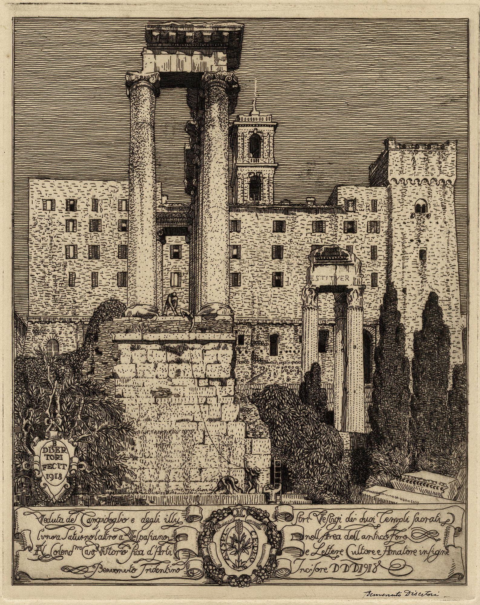 1) Il pianeta Venere. 1924. Acquaforte e bulino. mm 407x294. Foglio: mm 475x358. Bellini-Alberti, 45. Firmata a china nera in basso a destra, "ép. d'art." a china nera in basso a sinistra. 2) Veduta del Campidoglio. 1918. Acquaforte e bulino. mm 365x290. Foglio: mm 490x366. Bellini-Alberti, 29. Firmata a china nera in basso a destra. (2) Minimi e trascurabili tracce d'uso. Ottima conservazione generale.