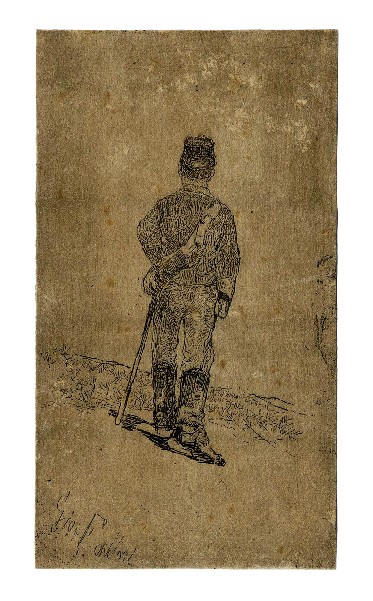 Giovanni Fattori, Un soldato. 1800. Acquaforte su zinco. mm 199x94....