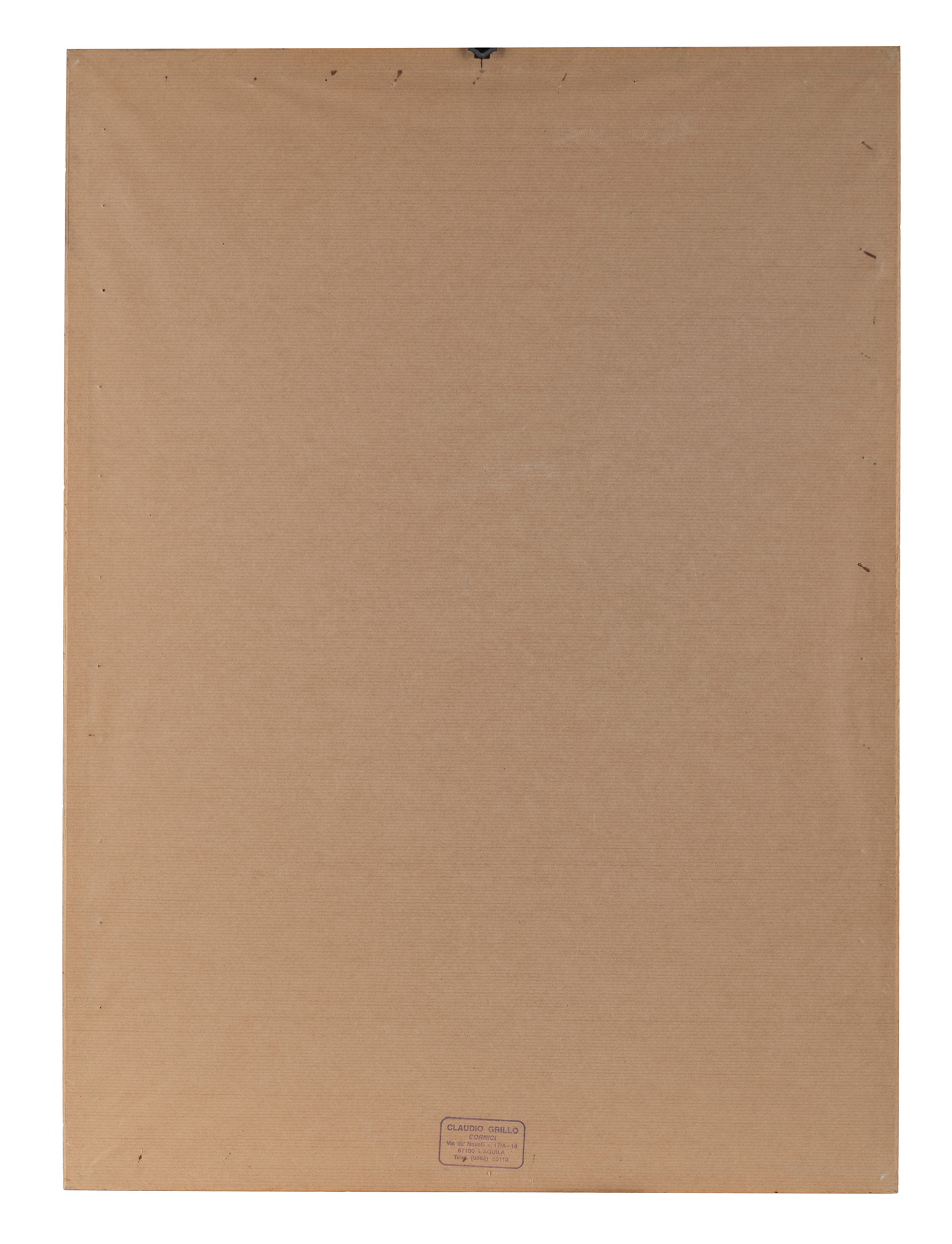 Manifesto litografico con nobilitazioni in argento. mm 665x407. Foglio: mm 733x527 (visibile). Monogramma in lastra in basso a sinistra, dati editoriali impressi in basso al centro. (1) In cornice lignea con vetro: cm 78x57,4. Foglio brunito con macchioline sparse. Uno strappo dal margine inferiore interessa l'inciso verticalmente.