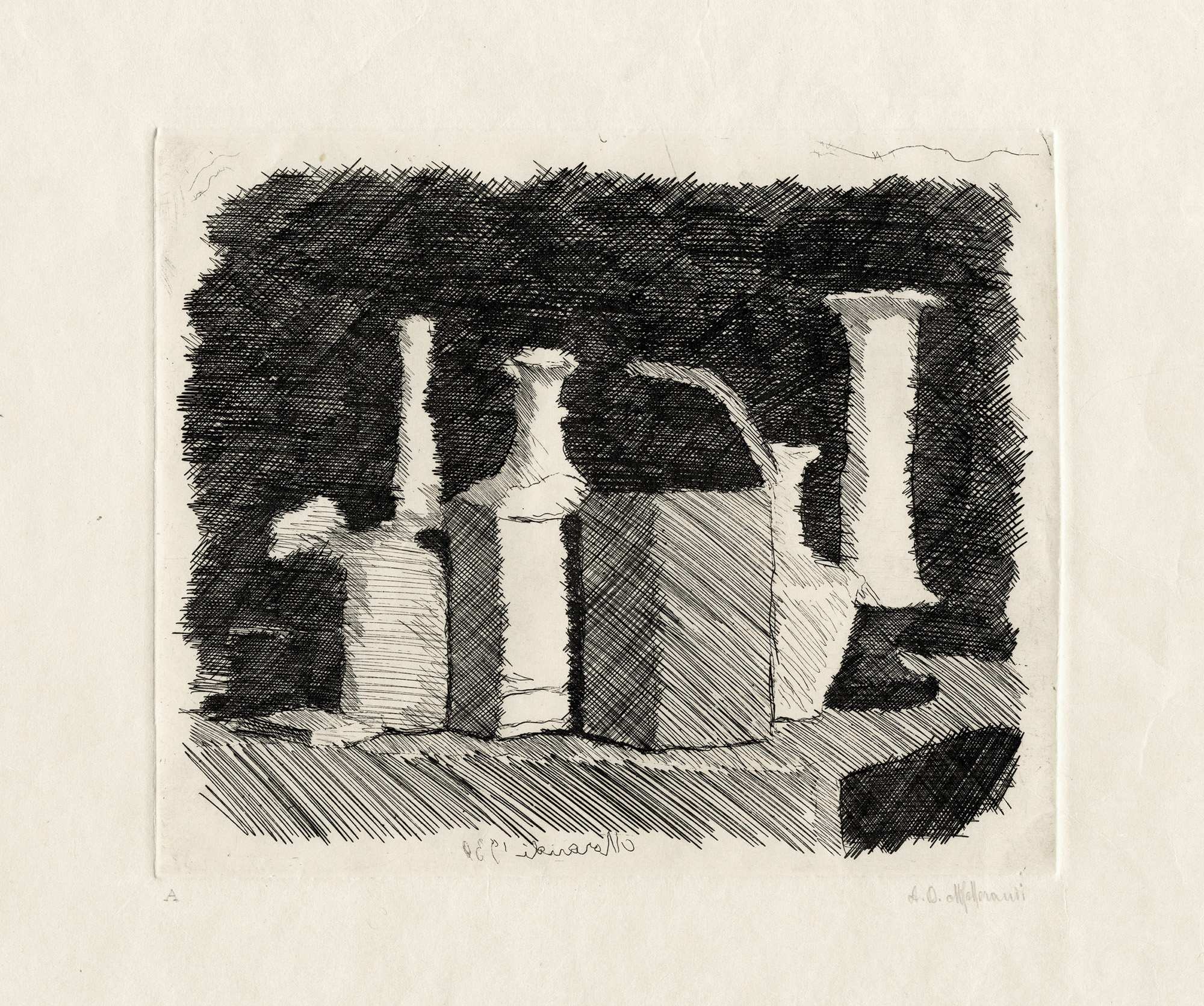Giorgio Morandi, Natura morta. 1930. Acquaforte. mm 200x236. Foglio: mm...
