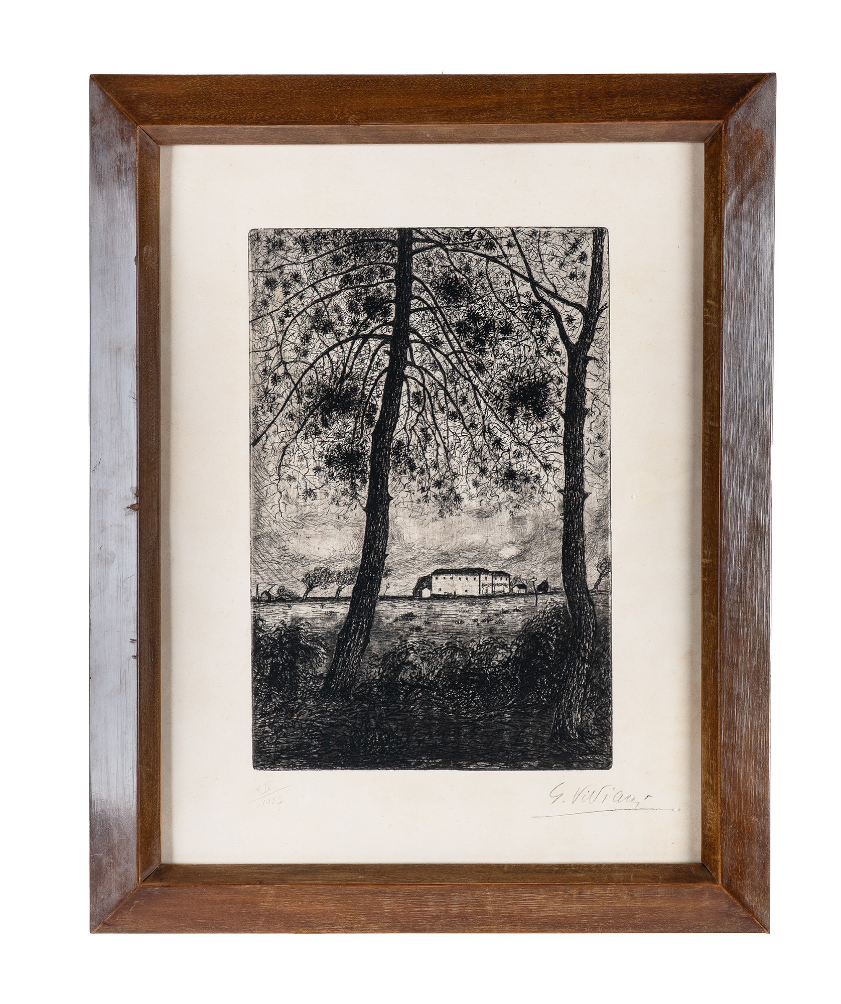 Giuseppe Viviani, Pini con casolare. 1927. Acquaforte. mm 370x246. Foglio: mm...