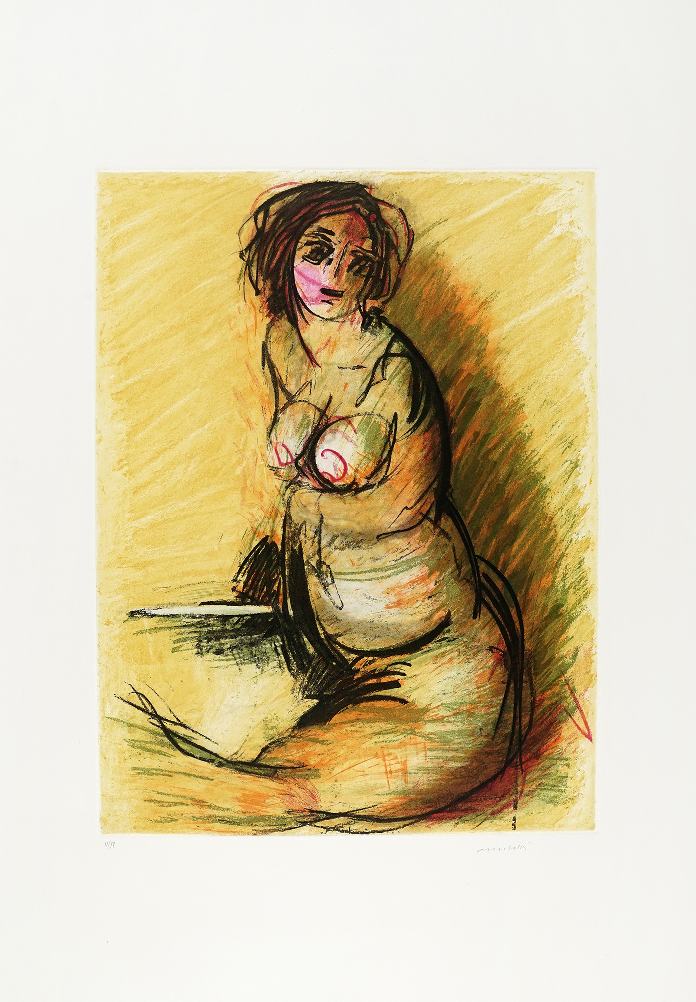1) Morlotti E., Figura femminile. Litografia a colori. Firmata a matita in basso a destra, numerata a matita in basso a sinistra. Timbro a secco all'angolo inferiore destro. Es. 11/99. 2) Annigoni P., Volto femminile. Litografia. mm 620x483. Foglio: mm 700x500. Firmata a matita in basso a destra, numerata a matita in basso a sinistra. Es. 103/120. 3) Sciltian G., Ritratto maschile. 1970. Litografia a colori. mm 300x275. Foglio: mm 700x495. Firmata e datata a matita in basso a sinistra. "P. A." a matita in basso a destra. 4) Nunziante A., Interno. Serigrafia. Firmata a matita in basso a destra, numerata a matita in basso a sinistra. Timbro a secco al margine inferiore. Es. 13/150. (4) Ottima conservazione complessiva.
