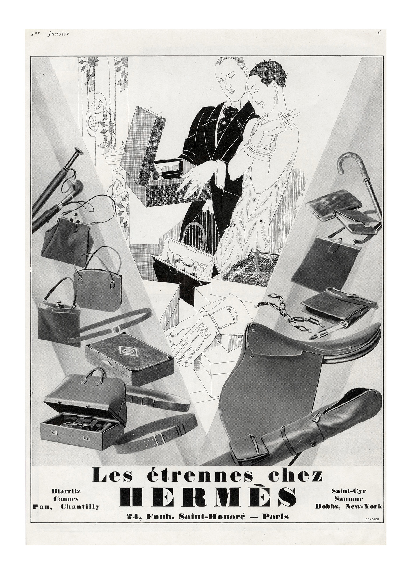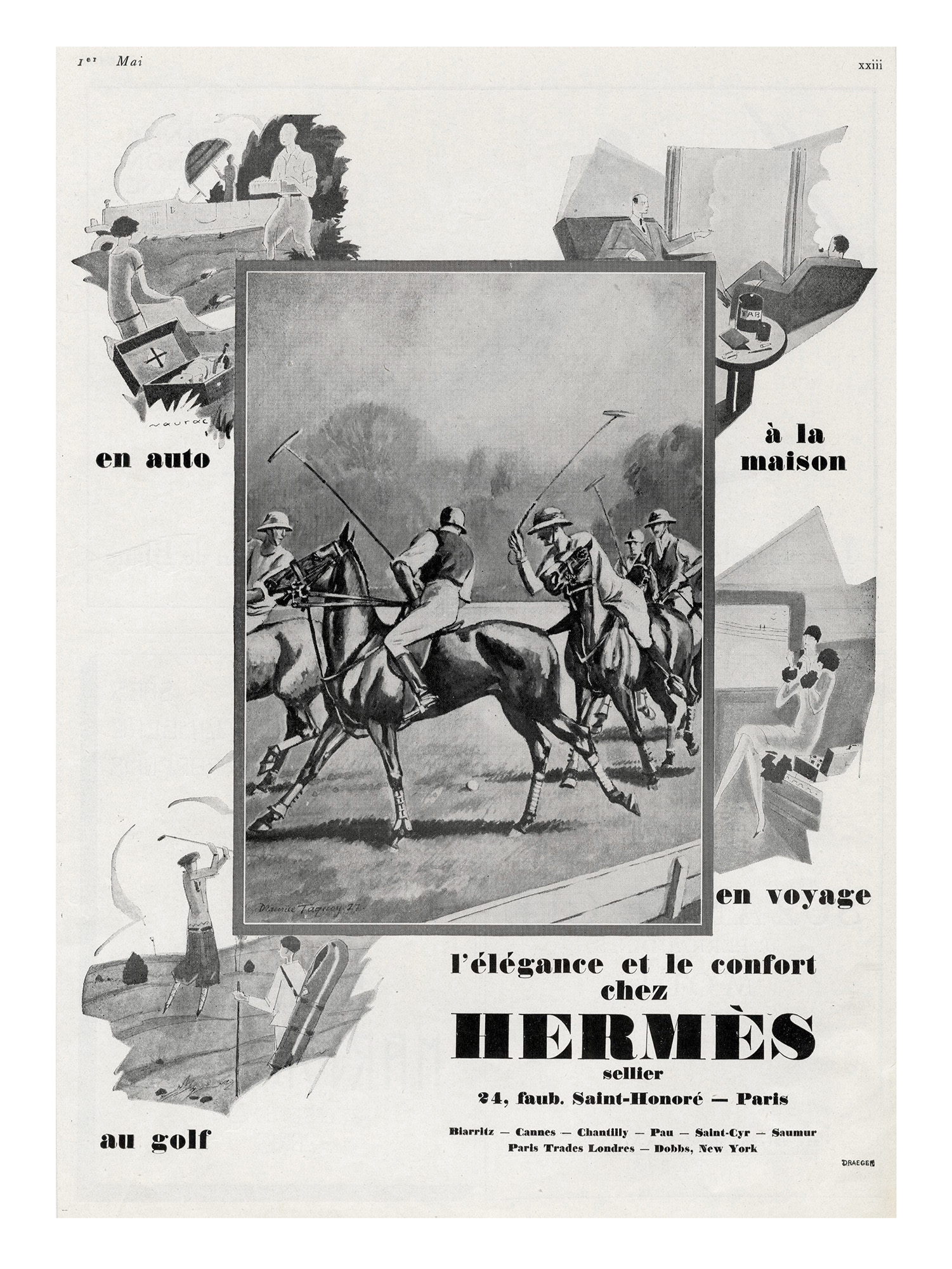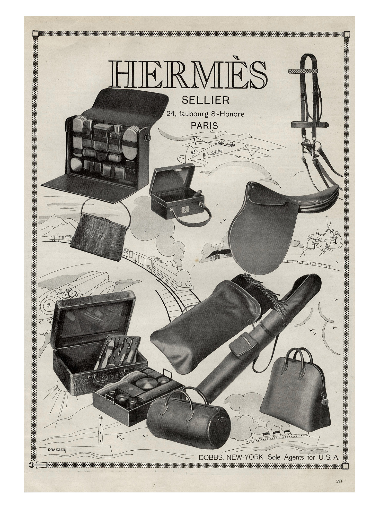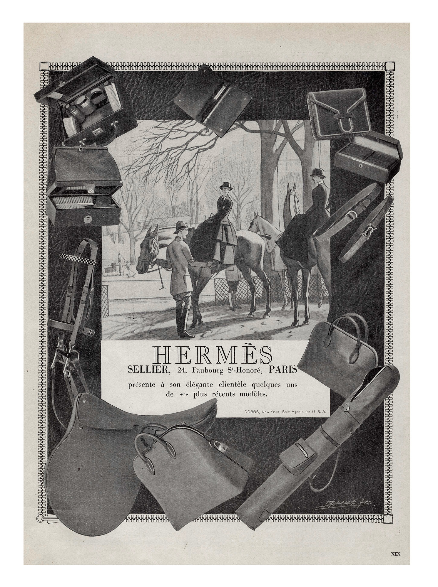 Raccolta di 8 pagine pubblicitarie per Burberry, Hermès e Louis Vuitton. mm 282x212 ca. cad. Fogli: mm 340x240 ca. cad. 6 pagine sono applicate a passe-partout e 2 sono sciolte. Le stampe sono tratte da varie riviste. (8) Segni d'uso e leggere bruniture sparse, altrimenti ottima conservazione.