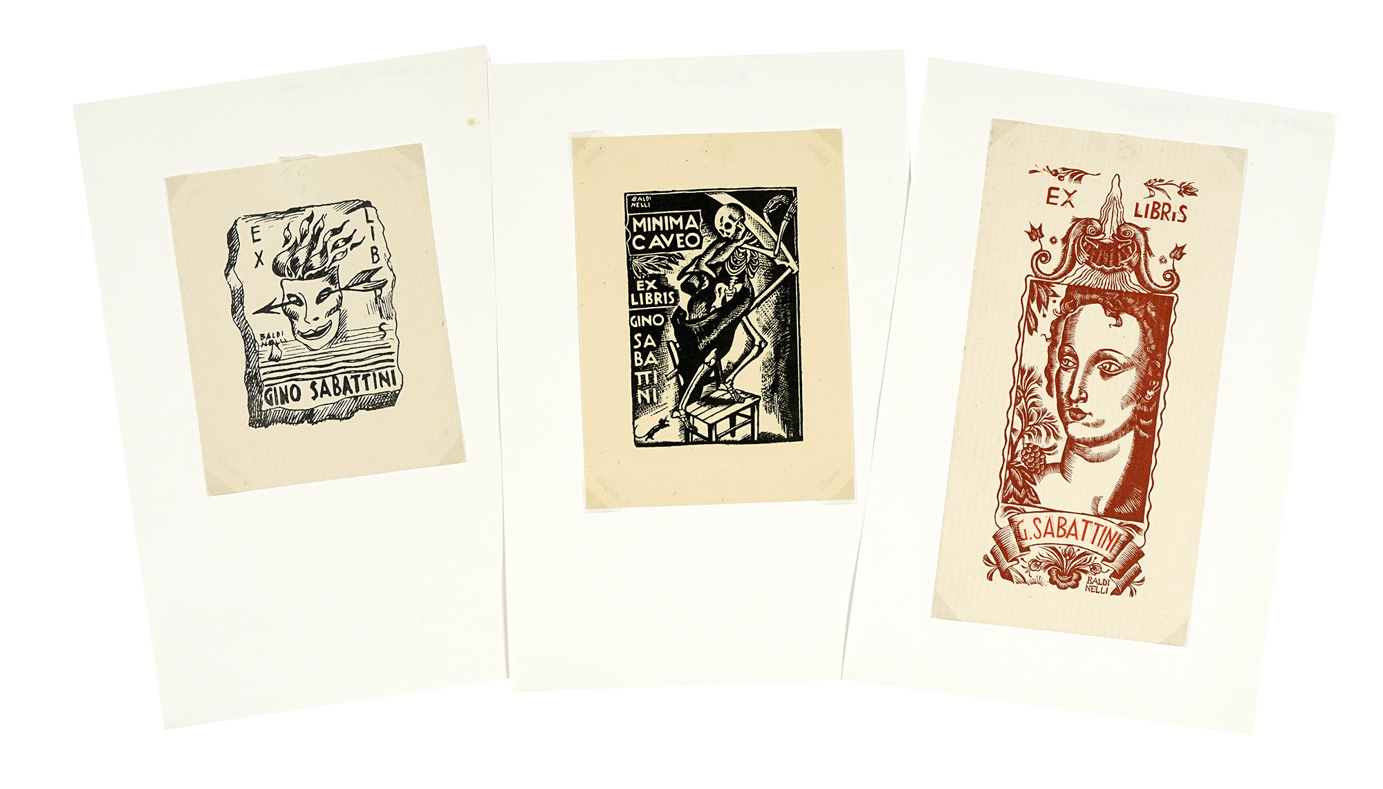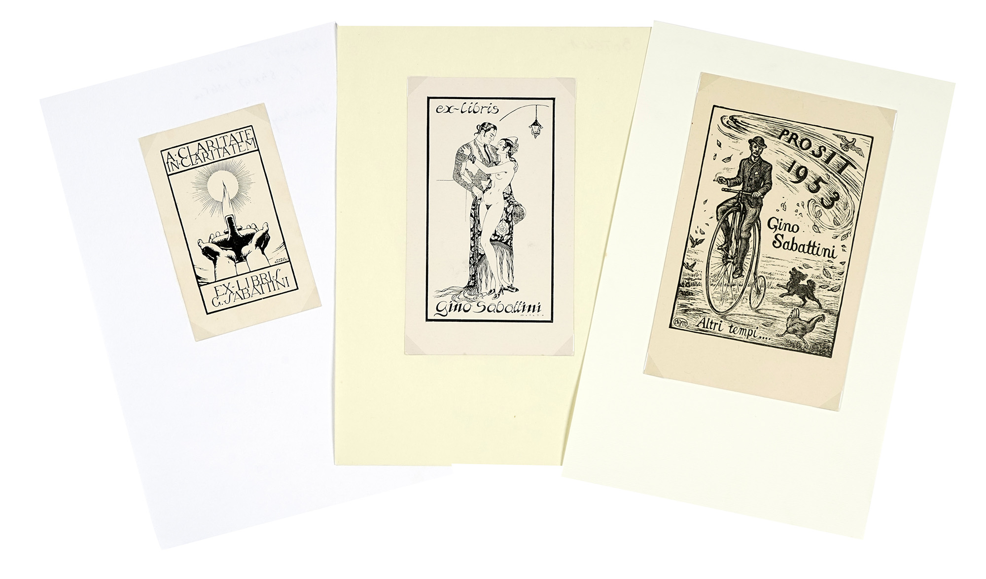 Autori vari, Corposa raccolta di 126 Ex Libris dedicati a Gino Sabatini. 1900.