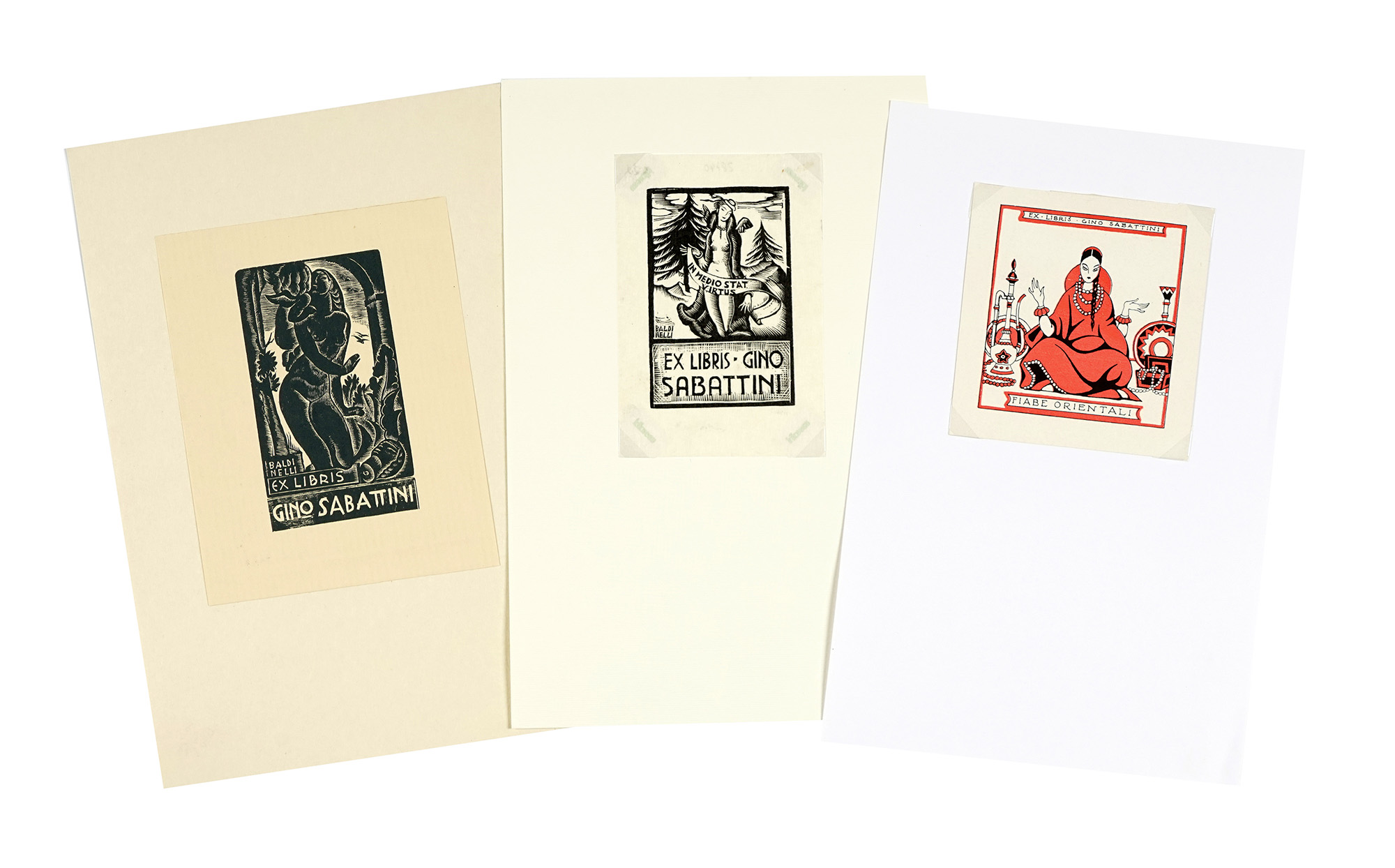 Lotto 322 | Autori vari, Corposa raccolta di 126 Ex Libris dedicati a Gino Sabatini....