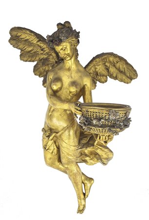 SCULTORE DEL XIX SECOLO Angelo con cesto Legno scolpito e dorato, alt. cm...