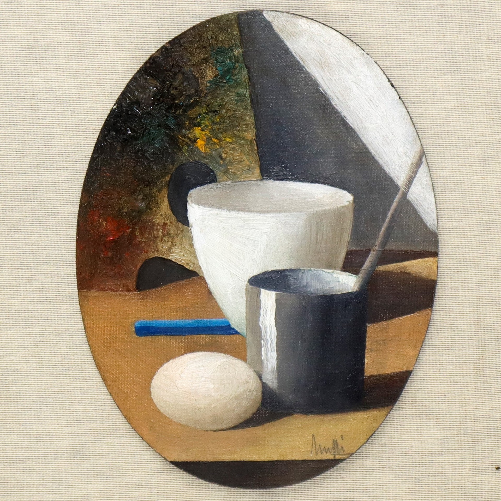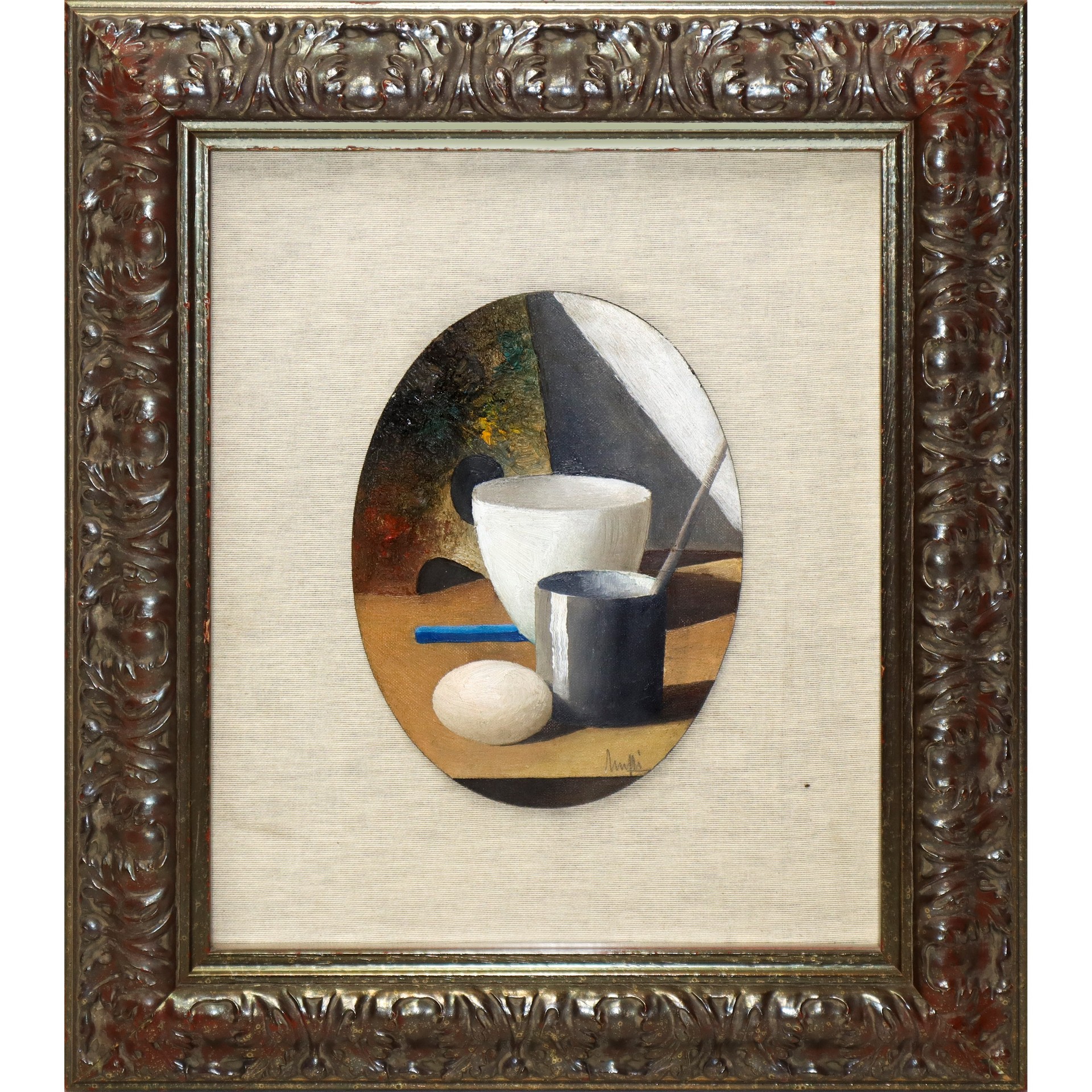 Marcello Scuffi (1948 - 2021) - Tavolozza realista, 1999 cm 40 x 30 Olio su legno ovale Firma sul retro. Autentica dell'Artista su fotografia
