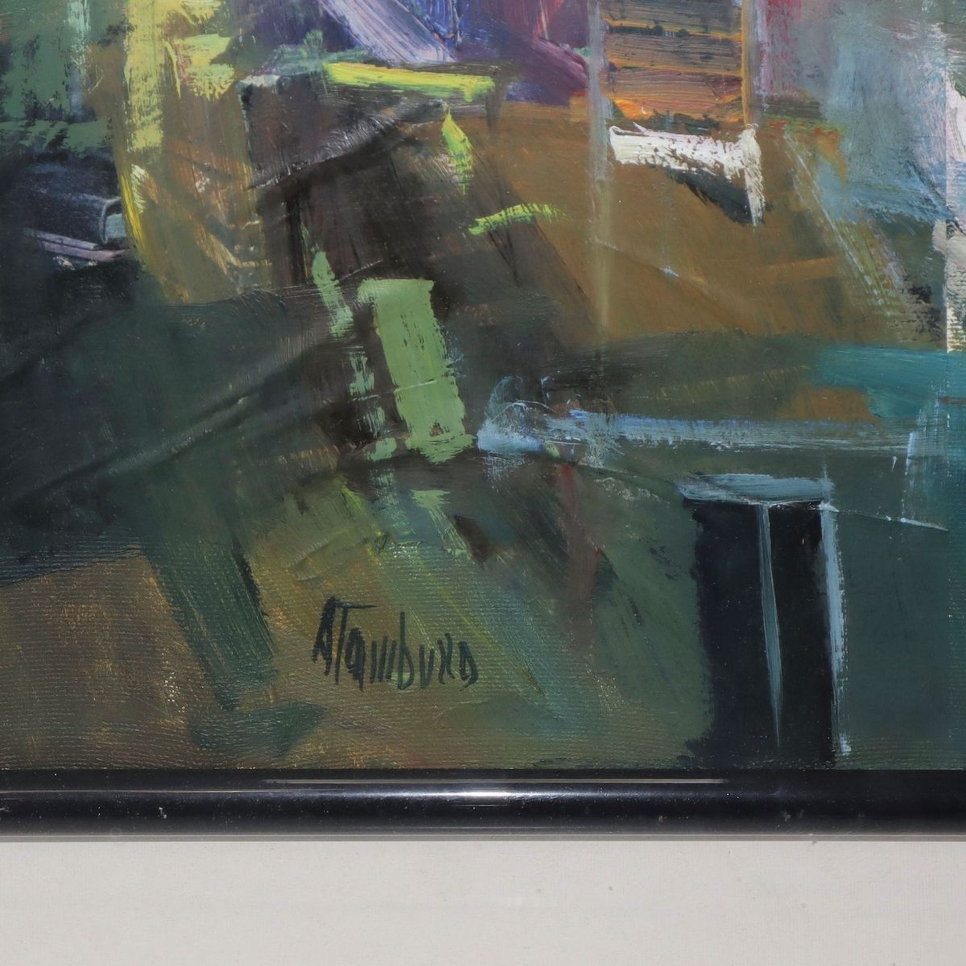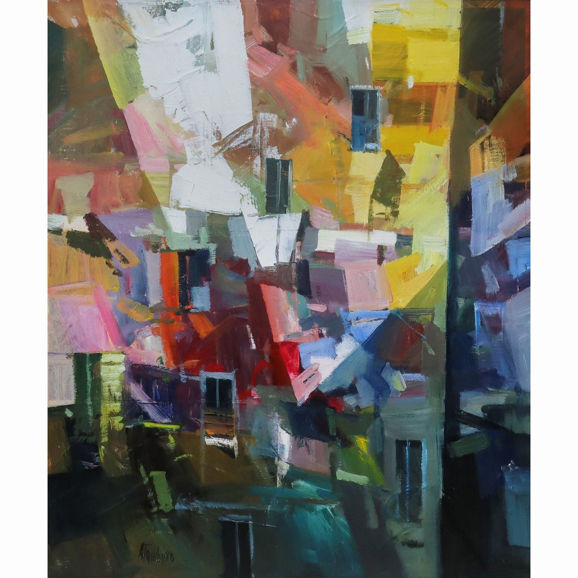 Antonio Tamburro - Facciata, 1989 h 60 x 50 cm , in cornice 79 x 68 Sul retro timbro della galleria La Grifo Tele Magione(PG). Firmato in basso a sinistra.