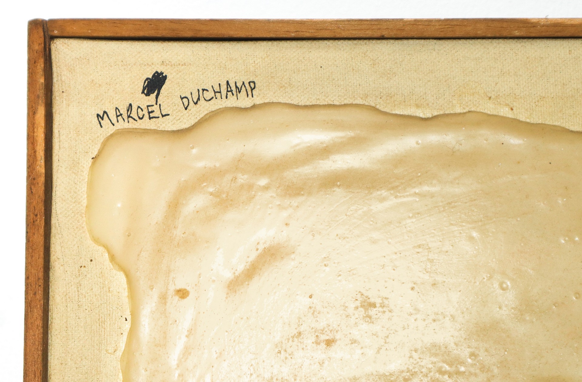 Bruno Donzelli (Napoli 1941) - Da Duchamp a Beuys, 1980 h cm 41,5x51,5 tecnica mista su tela Firmato e datato in basso a destra. Titolo, autore e data sul retro