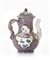 PICCOLA CAFFETTIERA IN MAIOLICA, SAVONA, MANIFATTURA L.LEVANTINO, PRIMA META' XVIII SECOLO, decoro paesetti con figurine entro riserve su fondo spugnato manganese, marca "L.L." e globo con croce.