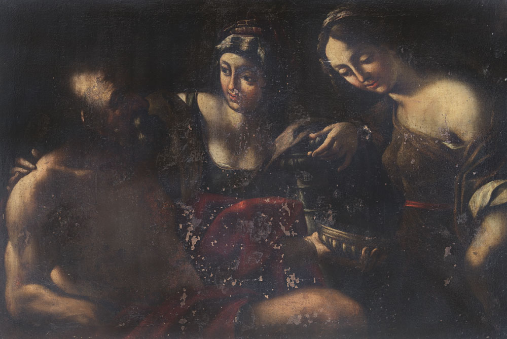 PITTORE VENETO DEL XVII SECOLO Loth e le figlieOlio su tela, cm 90x130;...
