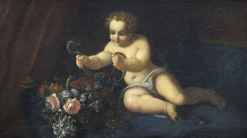 SCUOLA ROMANA DEL XVII SECOLO Ercole bambino con i serpenti Olio su tela, cm...